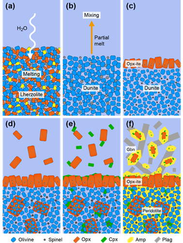 Wang, C., Liang, Y., Dygert, N, Xu, W. (2016). Formation of orthopyroxenite by reaction between peridotite and hydrous basaltic melt: an experimental study. Contributions to Mineralogy and Petrology, 171, 77. //doi.org/10.1007/s00410-016-1287-z