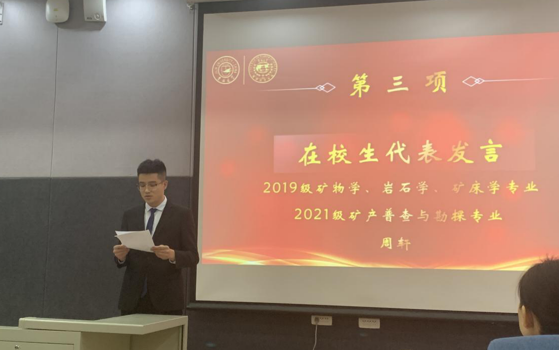 典礼上,2021级地质学专业张智超和2021级矿产普查与勘探专业直博生周轩分别代表新生和在校生进行发言。希望同学们能潜心科研,知行合一,赓续地质基因,传承17吃瓜网