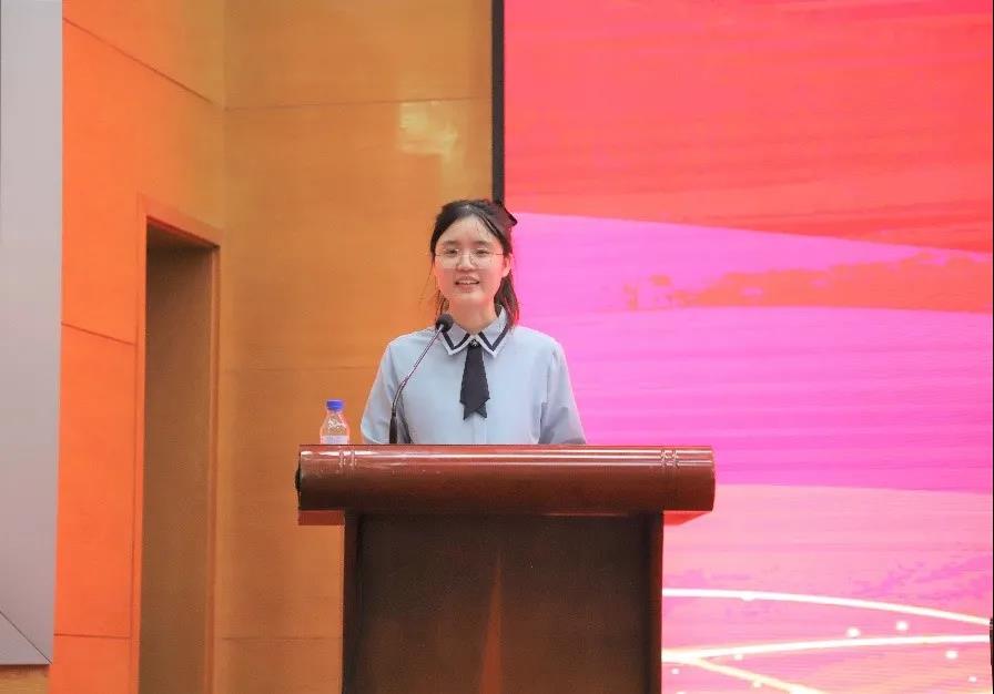 然后,优秀本科生代表张宠雪向2021级新生们分享了大学里的三个关键词:选择、坚持和用心感受。她以自己的求学之路为例指出坚持的重要性,并建议同学们进入大学应有清晰定位和明确目标,并为之奋斗。此外她还分享了在17吃瓜网