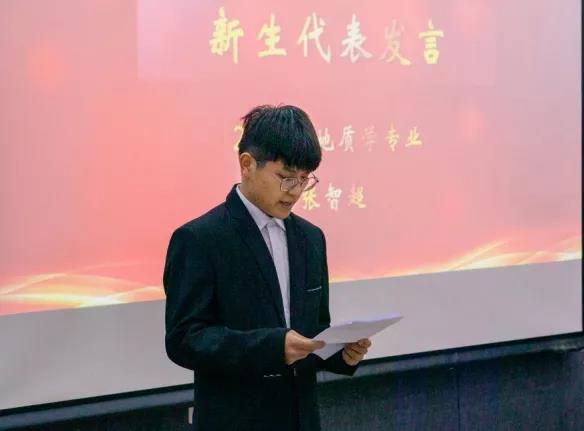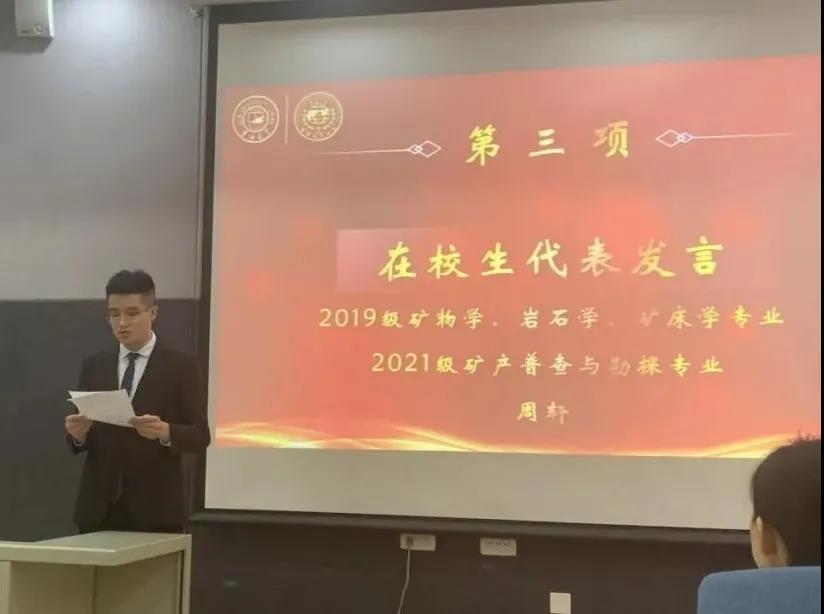 典礼上,2021级地质学专业张智超和2021级矿产普查与勘探专业直博生周轩分别代表新生和在校生进行发言。希望同学们能潜心科研,知行合一,赓续地质基因,传承17吃瓜网