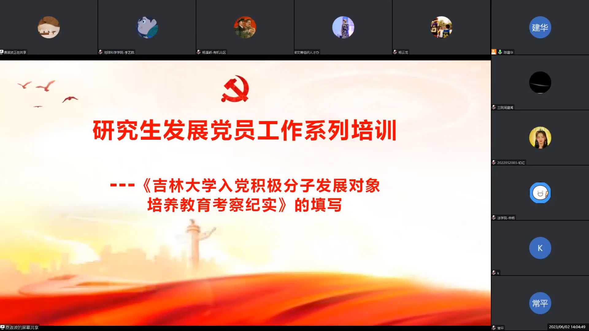 入党积极分子 发展对象培养教育考察纪实》的填写为例,详细介绍了确定入党积极分子、发展对象等工作的流程及材料填写的原则、内容和注意事项,她强调必须本着对同学负责、对党组织负责的态度确保发展党员工作流程严谨、材料填写规范,严把标准和程序关,高质量做好发展党员工作。