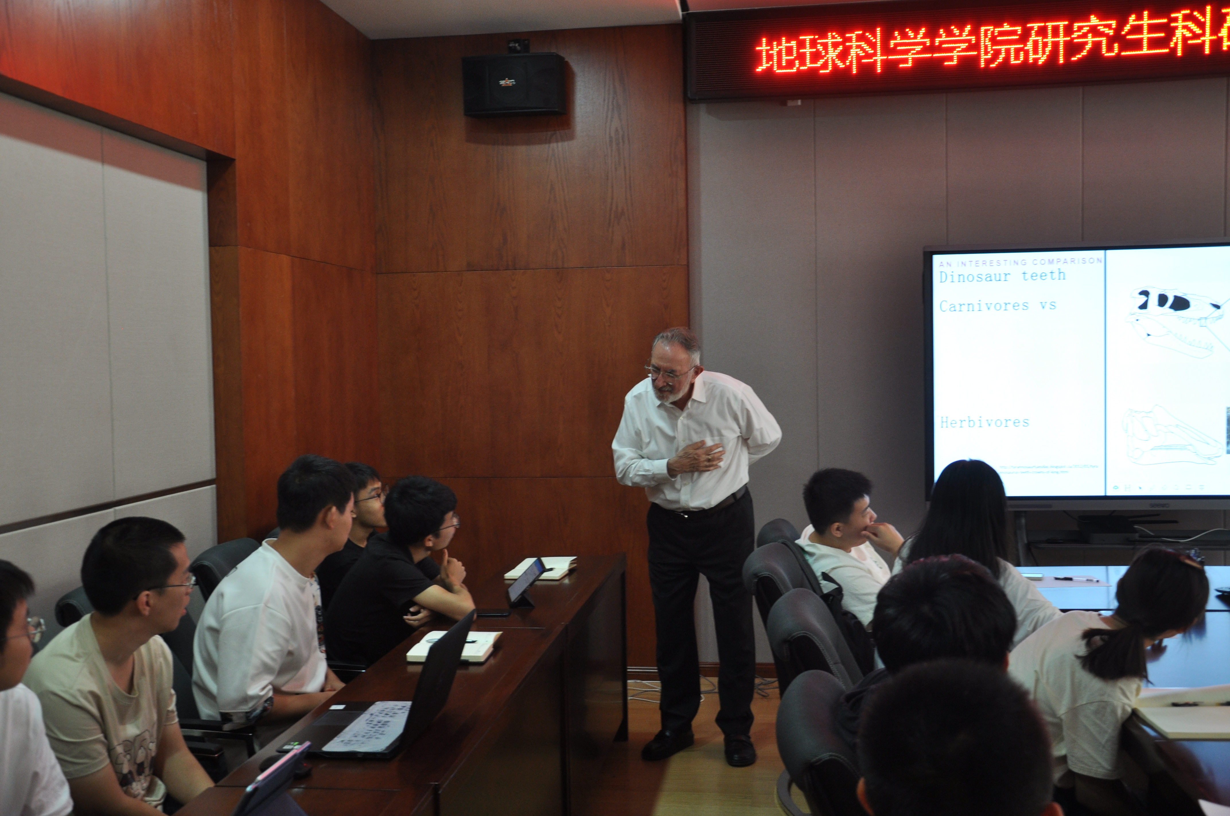 随后,参会师生与赖兹院士针对地球环境变迁与生物结构演化之间的关系、史前动物的演化与古生态模式等问题进行了深入交流探讨。同时,赖兹院士以声情并茂的讲述和幽默风趣的语言,向同学们分享了自己科研生涯上的宝贵经验和深刻启示,勉励同学们尽早确立明确的科研目标、找到合适的科研方法、保持强烈的科研兴趣,在科学研究的道路上一往无前、屡创新高。