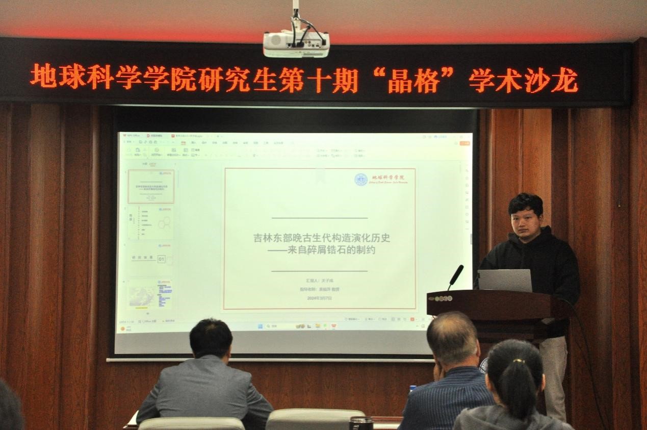 活动上,赵佳奇同学分析论述了辽北清原地区中生代花岗质岩石形成时代、变形特征及其地质意义。周颂同学讲述了中国东北地区额尔古纳韧性剪切带花岗质糜棱岩的形成时代与变形特征。关子成同学分享了吉林东部晚古生代构造演化—来自碎屑锆石的制约。庄思潼同学以清原地区井家沟岩组为例,探讨了中-下地壳层次变质岩石变形机制。魏虹羽同学分享了如何运用数值模拟板块俯冲来探讨板块俯冲带来的地壳变动、地震活动等现象。李效港同学分析论述了吉中和新安屯地区钼矿床的成因及找矿潜力。赵立翔同学分享了通过对北辽河群基性岩的地质年代学和地球化学的研究,探讨了胶-辽-吉带的成因与构造演化。