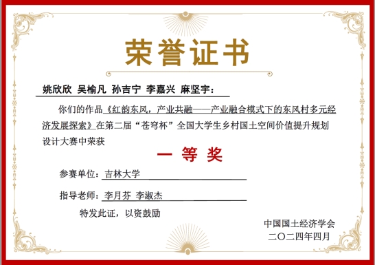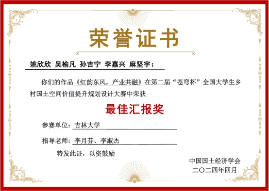 选手表现出较高的专业水准、临场应辩能力和良好的精神风貌,最终荣获三项佳绩。学子们不仅在大赛中展现了扎实的专业素养和创新能力,同时也通过大赛的锻炼,显著地提高了专业技能;而学子们的优秀作品,则为乡村国土空间价值的提升提供了宝贵的思路和方案。