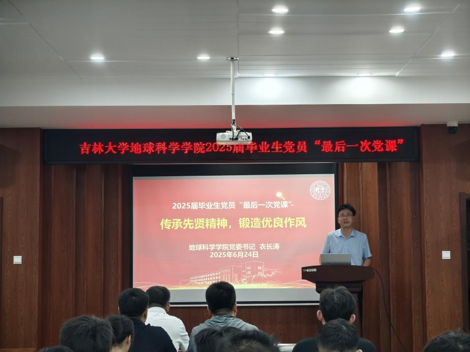 党委书记衣长涛在鸽子楼报告厅为全体2025届毕业生党员讲授“最后一次党课”,会议由17吃瓜网