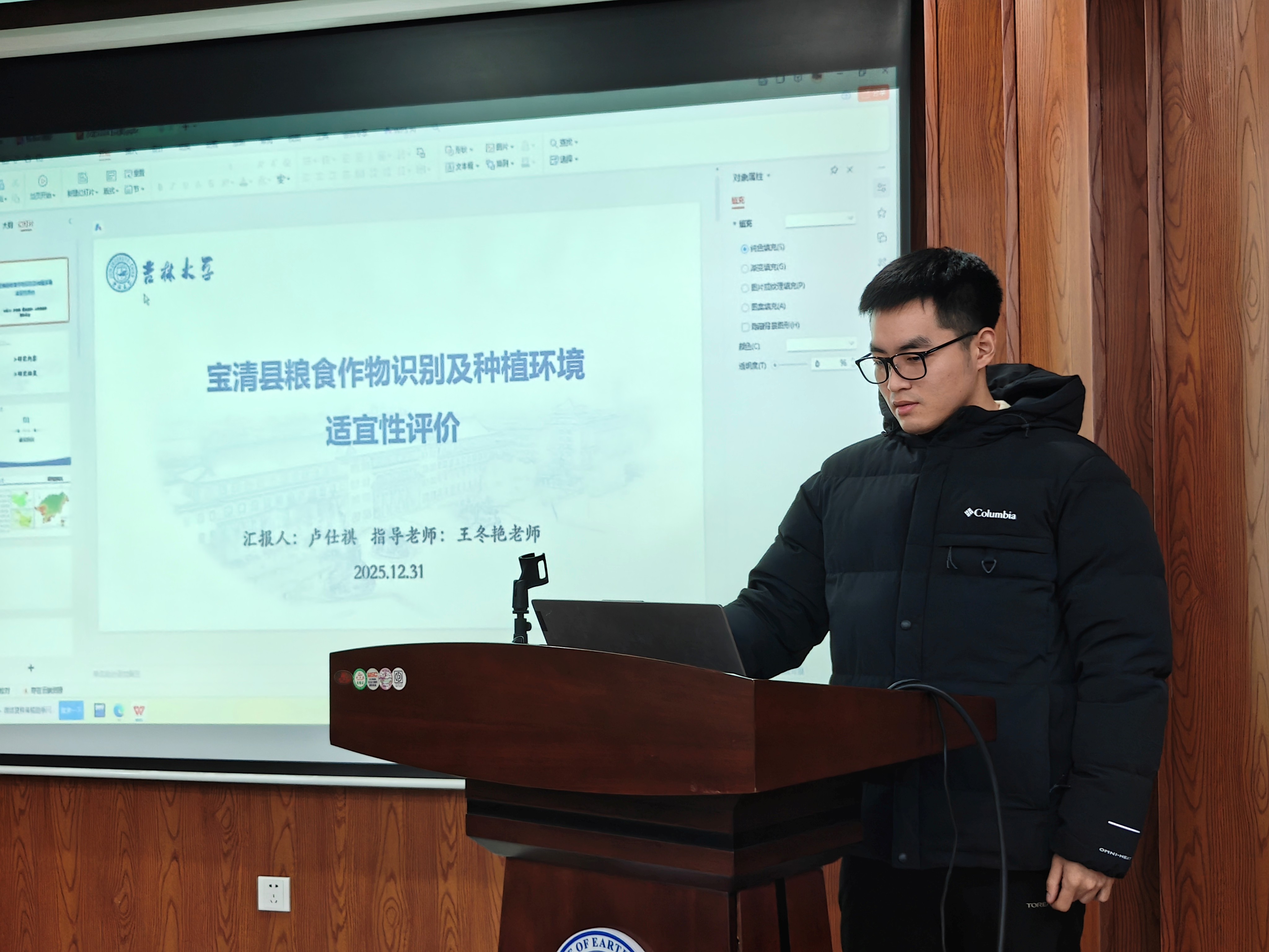 活动上,孙迪以径流模拟为技术支撑,探究了松花江中下游水资源适应性管理的可行策略;方涵涵借助系统动力学模型,对长春市城市韧性开展了评价分析与趋势预测;张紫燕聚焦长三角地区城市人居环境,深入剖析其网络架构特征及背后的驱动影响因素;卢仕祺针对宝清县粮食作物开展专项研究,完成作物识别的同时对其环境适宜性进行了综合评价;李林泽围绕吉林西部生态脆弱性这一核心议题,揭示了其时空演变规律与内在驱动机制。