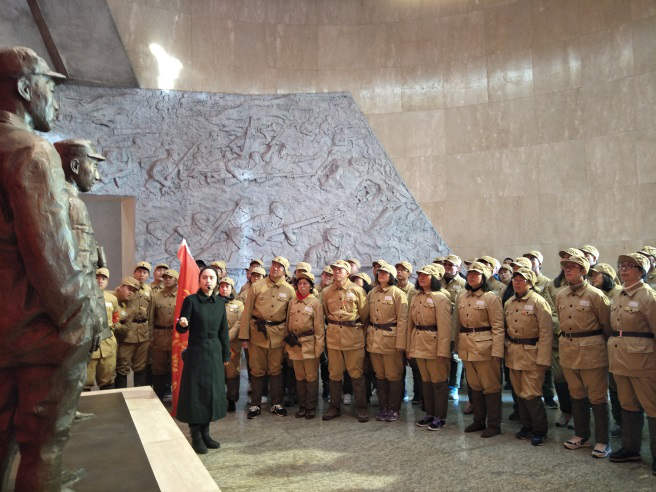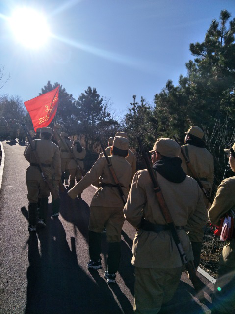 为更好的体验革命先辈们的精神,我们在到达四平党校后集体换上了军装,随后参加了本次活动的启动仪式,带队老师向我们讲解了活动目的及意义并先后进行了奏国歌,活动动员,队旗授予仪式,伴随着“传承英雄史,再铸英雄魂;永葆党旗红,执政为人民”的铮铮誓言,我们开始了一天的红色之路。