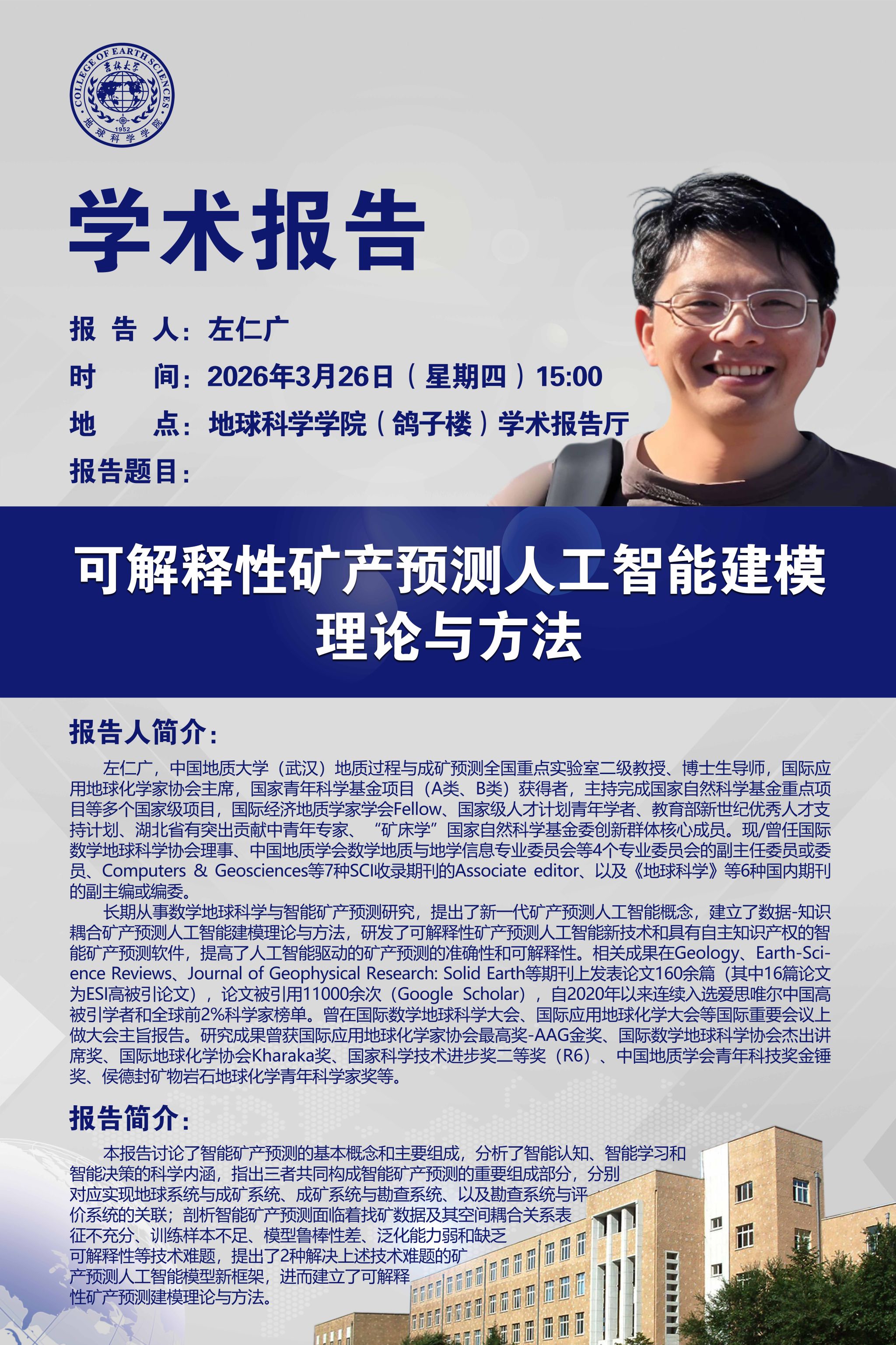 中国地质大学(武汉)地质过程与成矿预测全国重点实验室左仁广教授学术报告