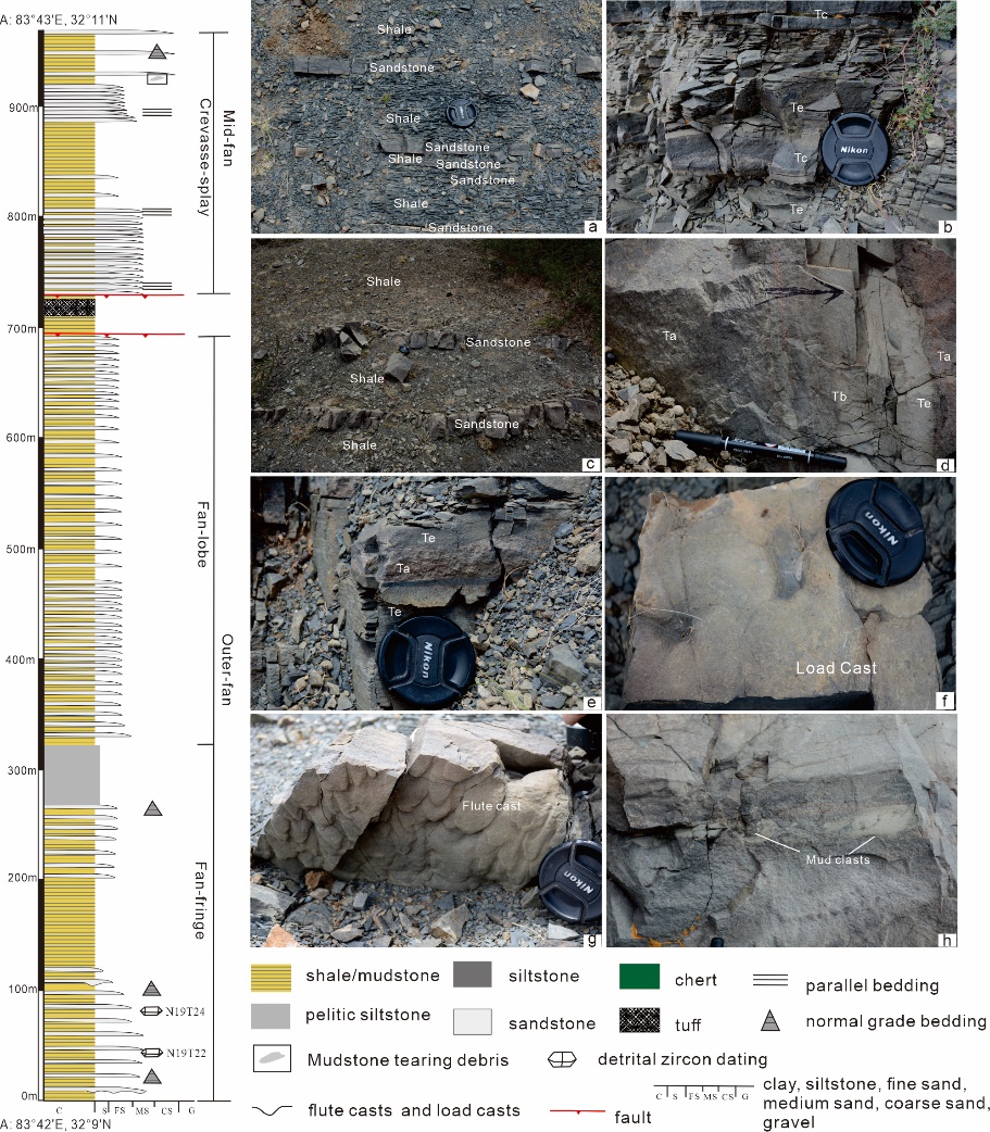 图1 拉果错早白垩世阿普特期浊积岩柱状图及野外照片