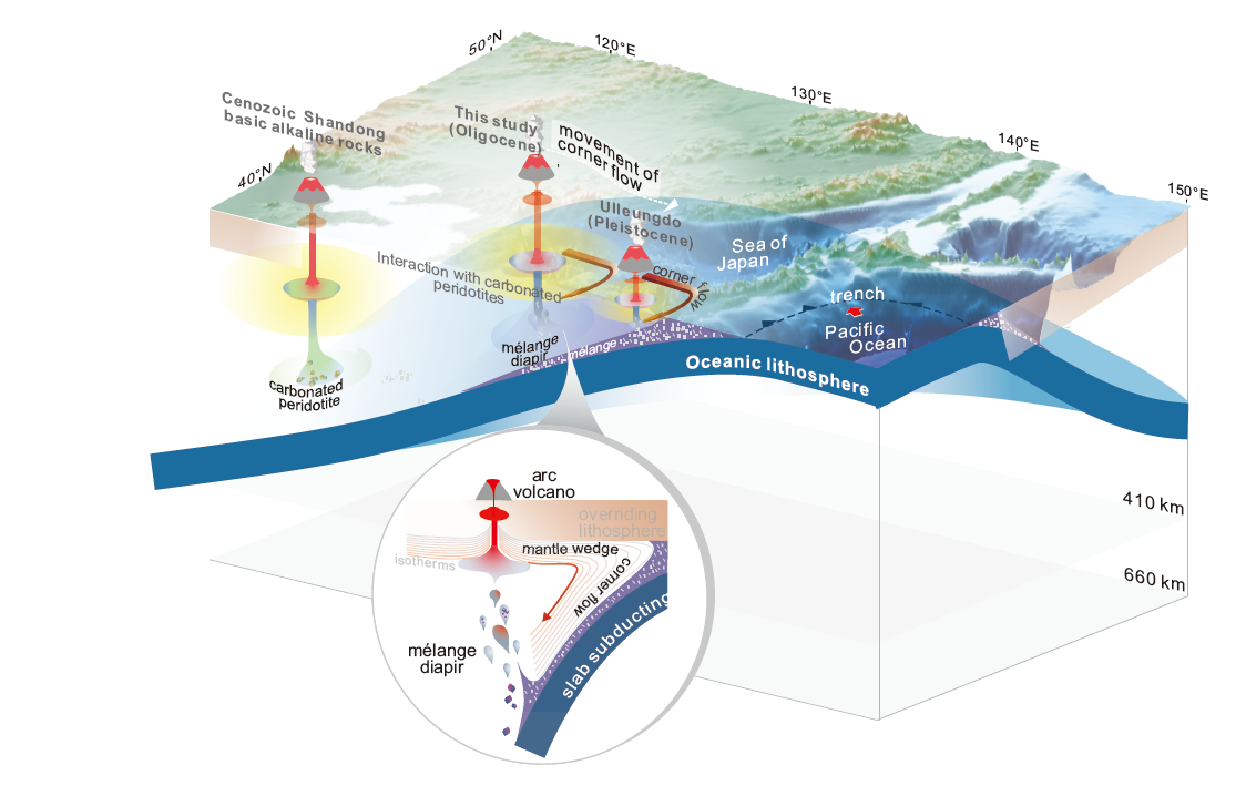 Ke-Chun Hong, Feng Wang*, Si-Wen Zhang, Wen-Liang Xu, Yi-Ni Wang, De-Bin Yang. Oligocene melting of subducted mélange and its mantle dynamics in northeast Asia. Geology (April 13, 2024). //doi.org/10.1130/G52115.1.