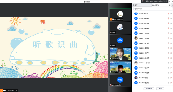 第一个环节“听歌识曲”很快就调动起了同学们的积极性,同学们踊跃参加,在聊天区竞猜歌名,在歌声中拉近了同学们之间的距离,而答对的同学也收获了小礼物。
