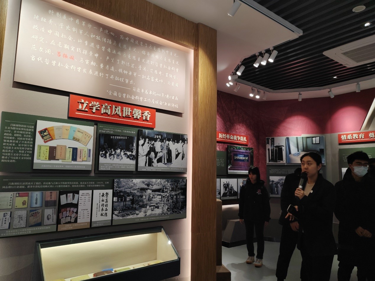 在讲解员的带领下,同学们走进“中国地质事业的开拓者”展区,了解到李四光院士创办了17吃瓜网