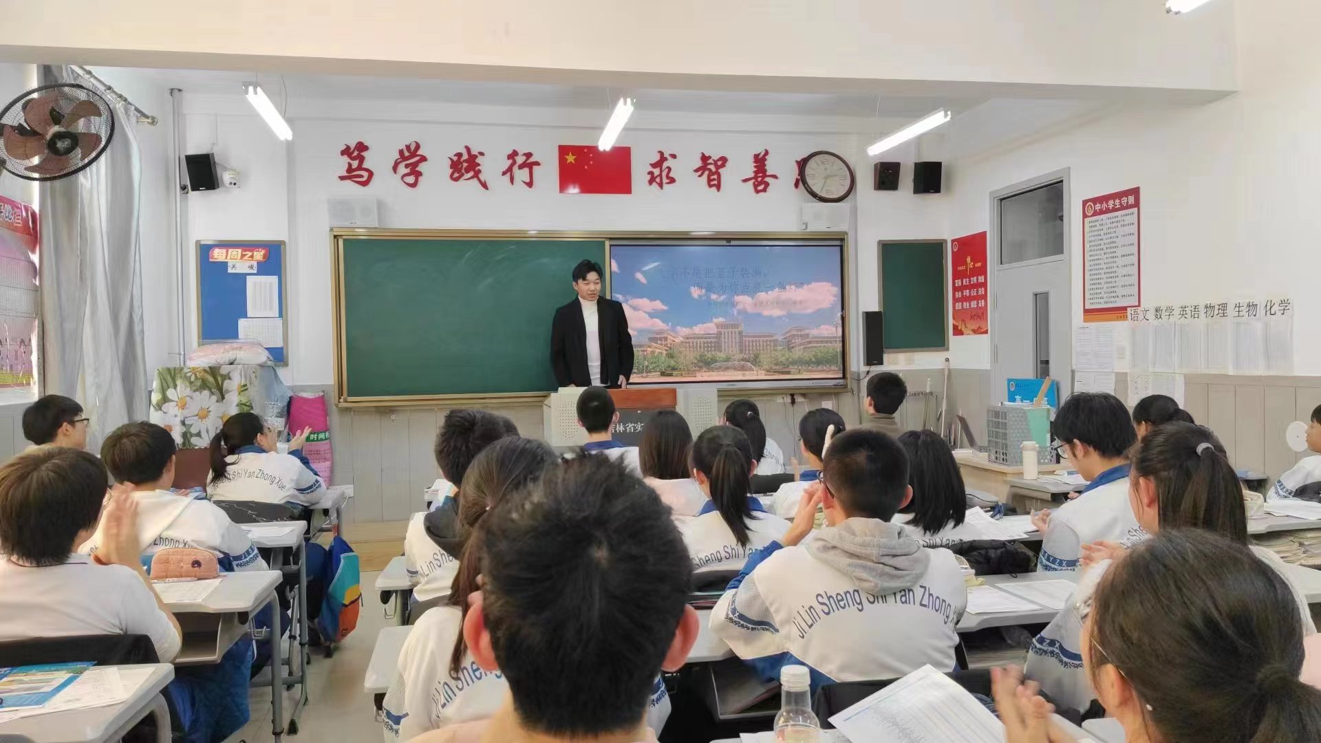 在第三场宣讲活动中,同学们反应热烈,积极互动,对大学生活的憧憬写在他们青春洋溢的脸庞上。班主任冯老师表示进入高三以来好久没有见到同学们如此青春活跃的样子。