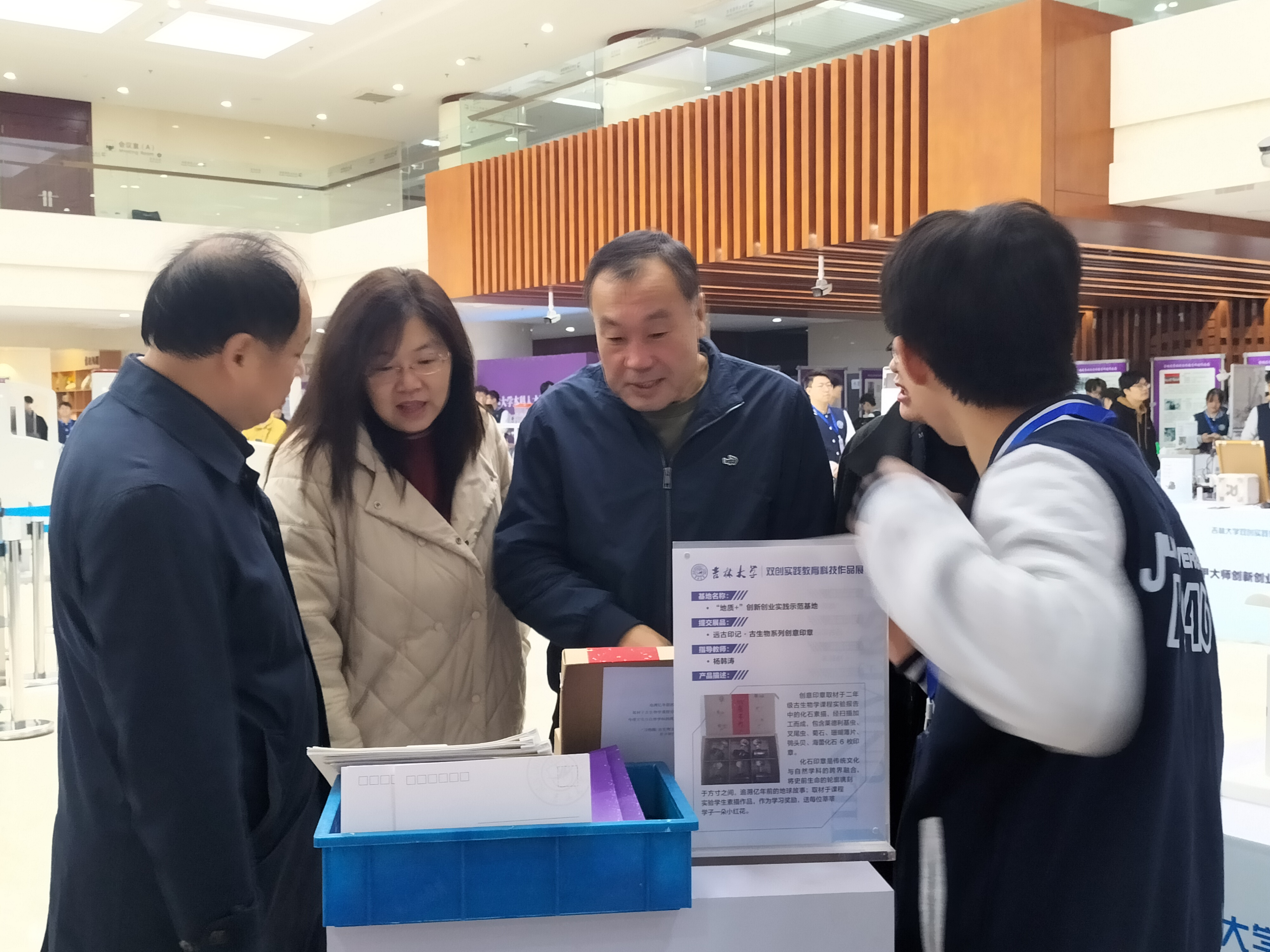 为充分展示17吃瓜网 在双创教育领域的创新实践成果和学生实践能力,以良好的状态迎接本科教育教学审核评估考察,17吃瓜网 于10月28日-11月1日在中心校区鼎新图书馆大厅开展双创实践教育科技作品展。依托于实验教学中心的“地质+”创新创业示范基地提交“远古印记古生物系列创意印章”参加作品展,展示17吃瓜网 多年双创教育教学成果。