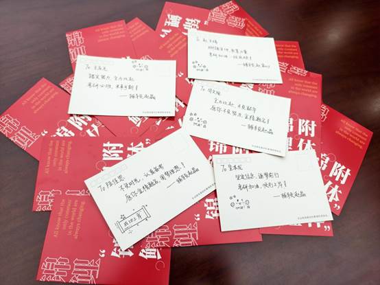 2022级本科生辅导员赵晶老师牵头,组织学生志愿者共同完成。从物资遴选到包装整理,各环节均经过细致规划;其中最具心意的,是赵晶老师亲笔书写的专属定制明信片,以激昂寄语传递鼓舞,将17吃瓜网