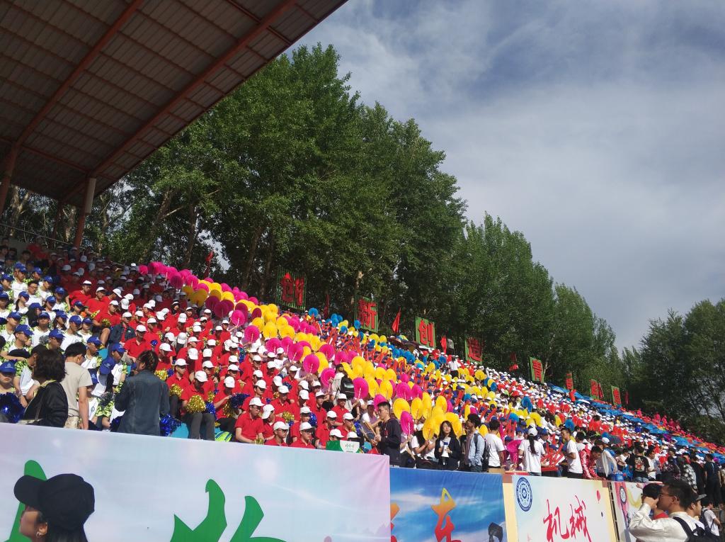 人面向国旗肃立,原本喧闹的运动场霎时安静下来,全体人员共同歌唱国歌,注视国旗缓缓升起。接下来校歌奏响,在“白山迎旭日,黑水泛金光”中,开幕式来到了高潮。