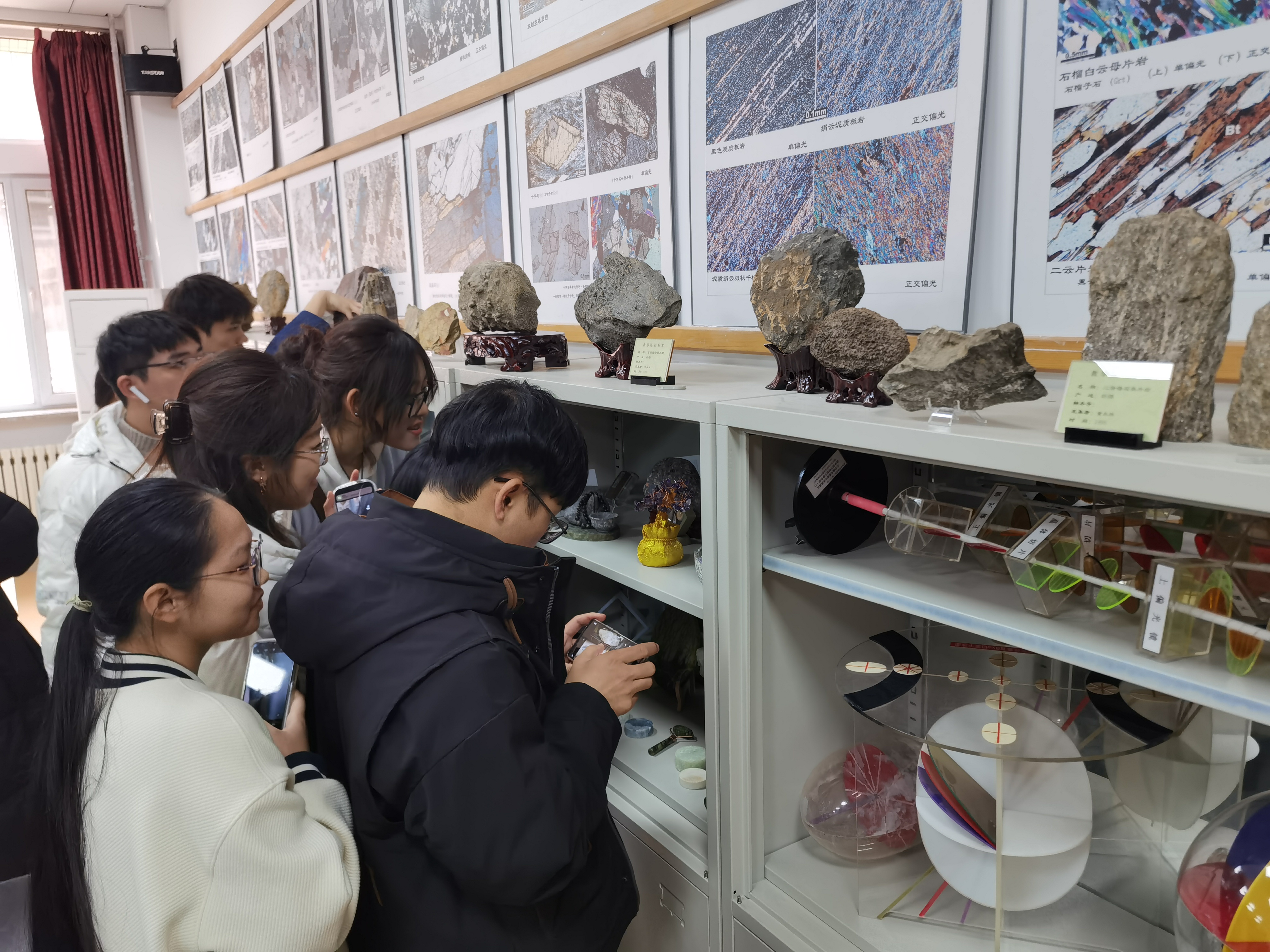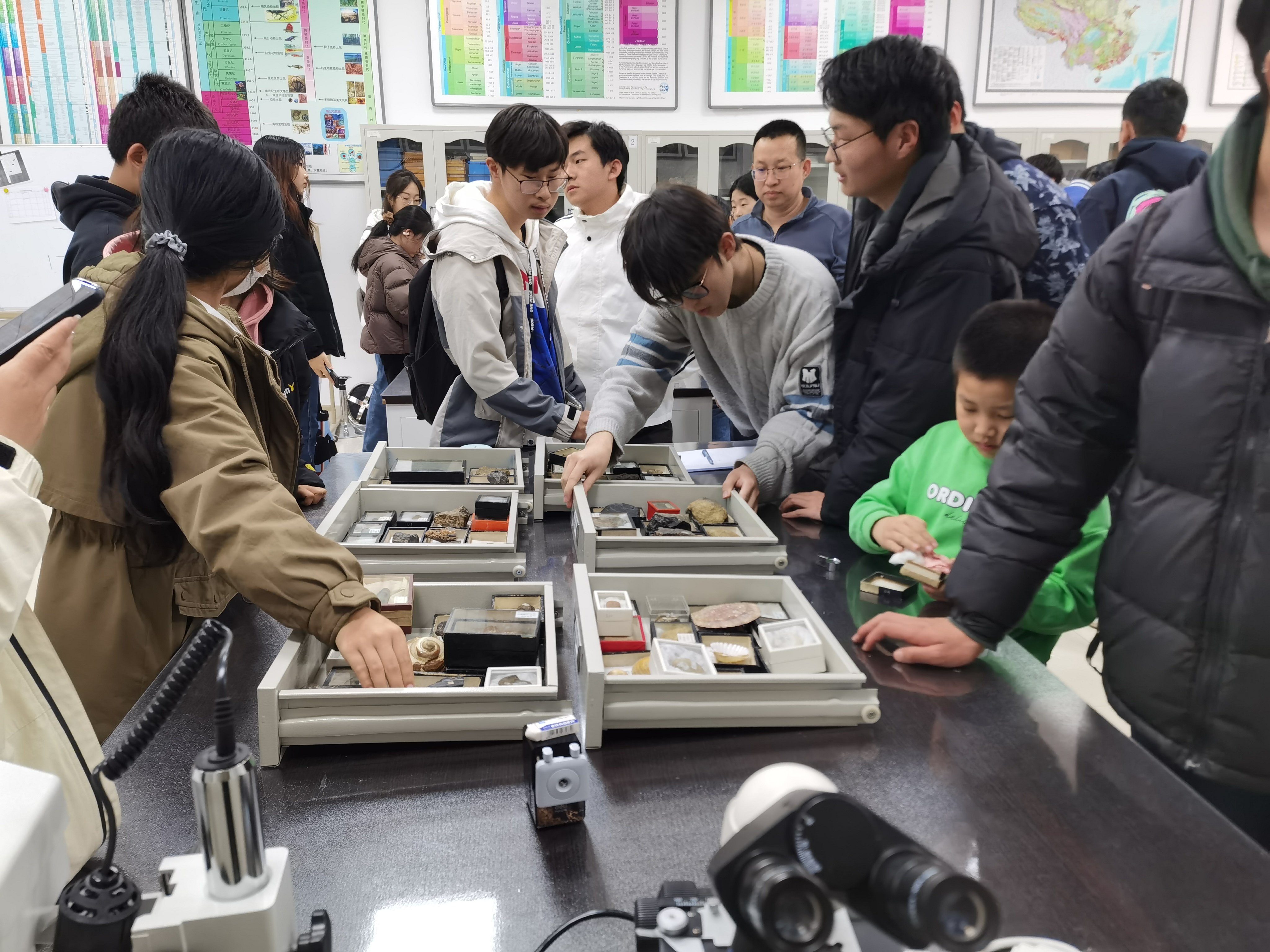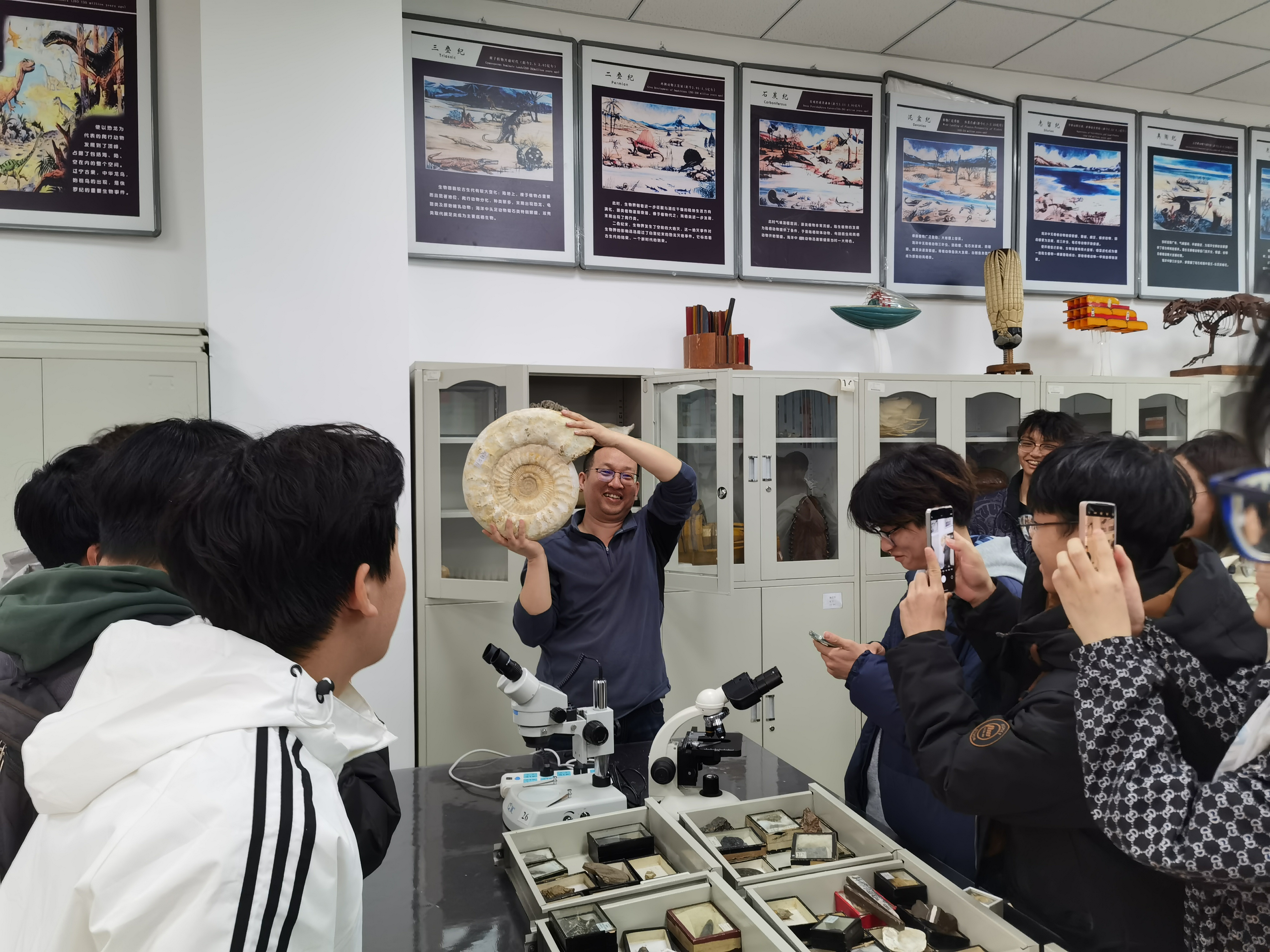 教学及科研实验室建制、教学实验室基本教学情况及其特色。之后参观了岩石学实验室、古生物学实验室、矿物学实验室。