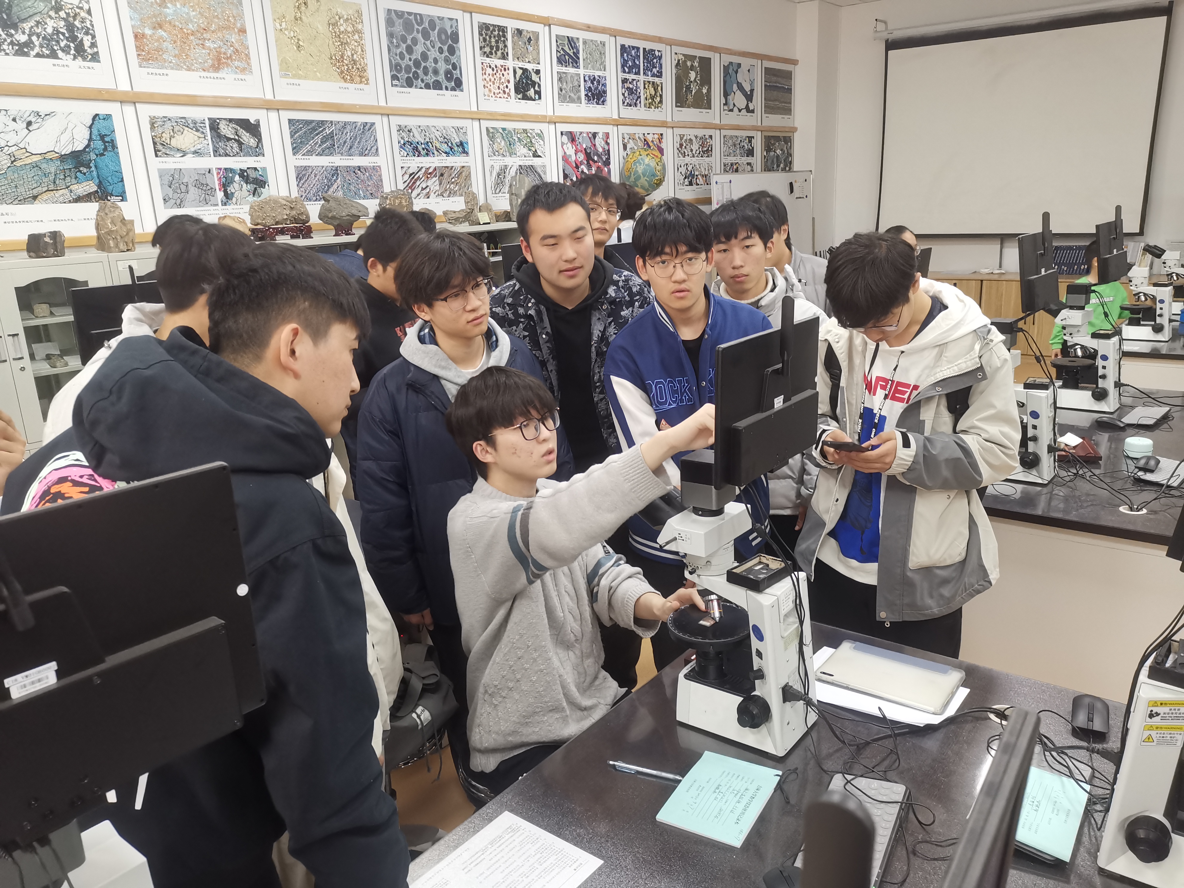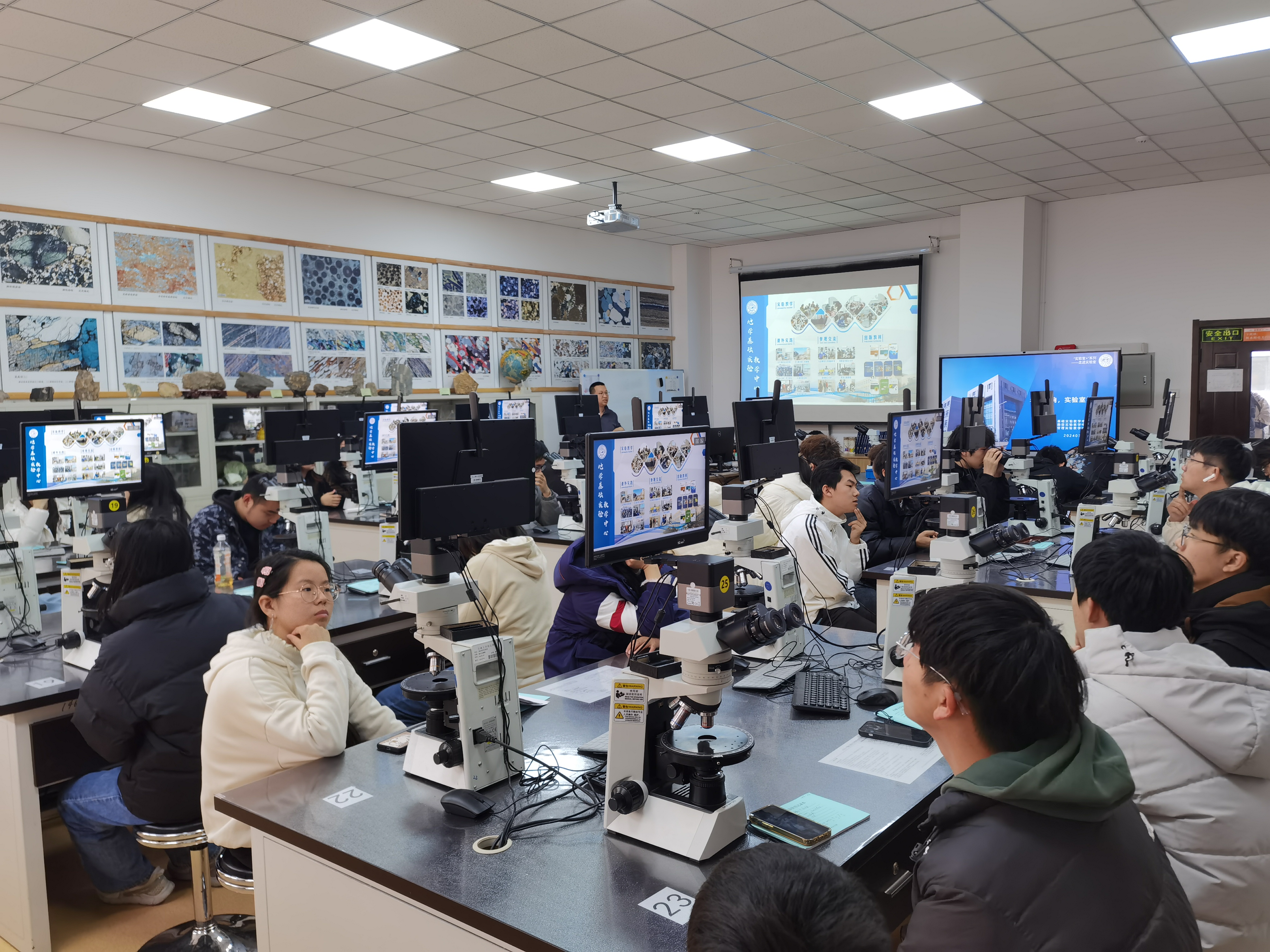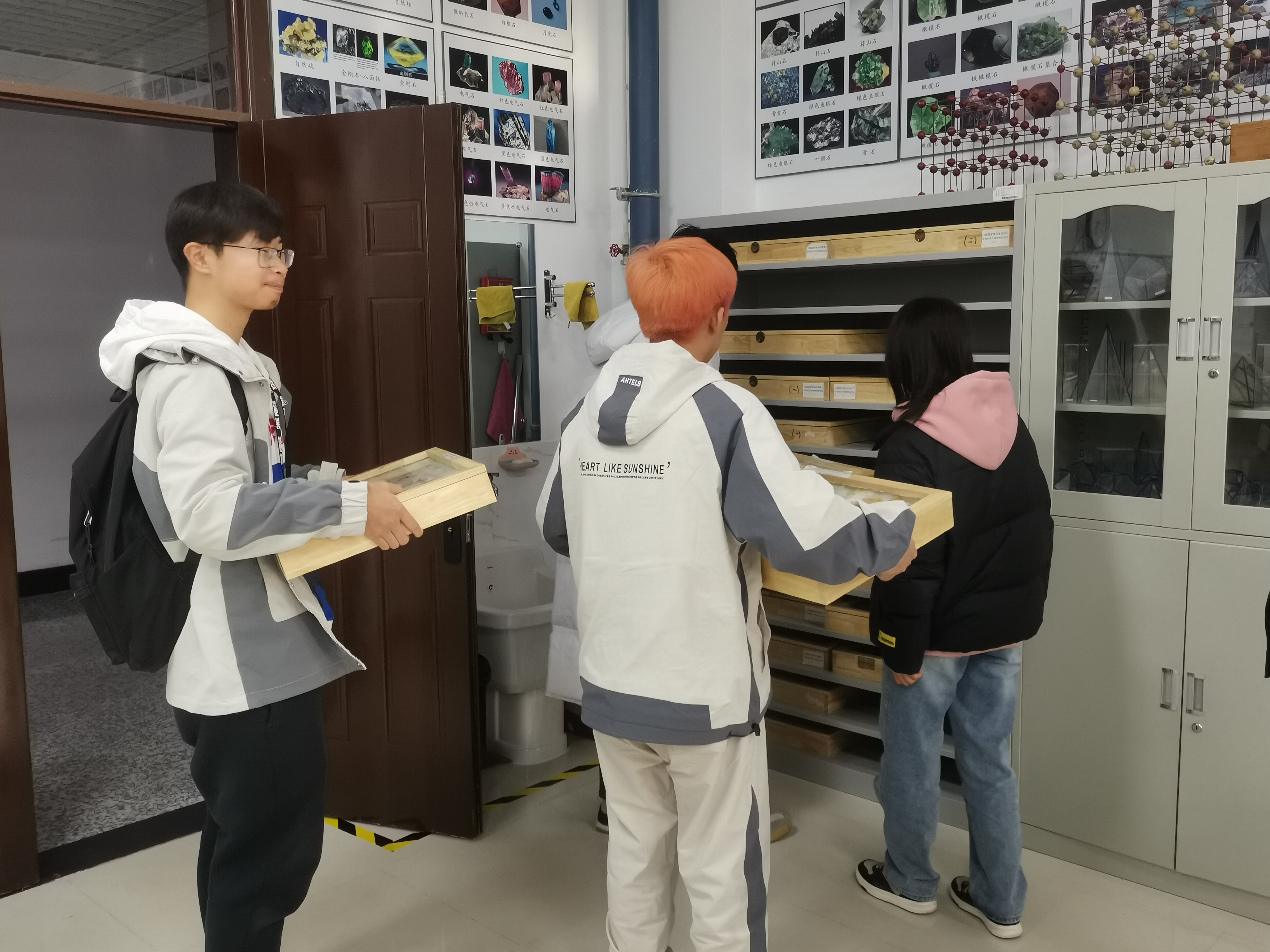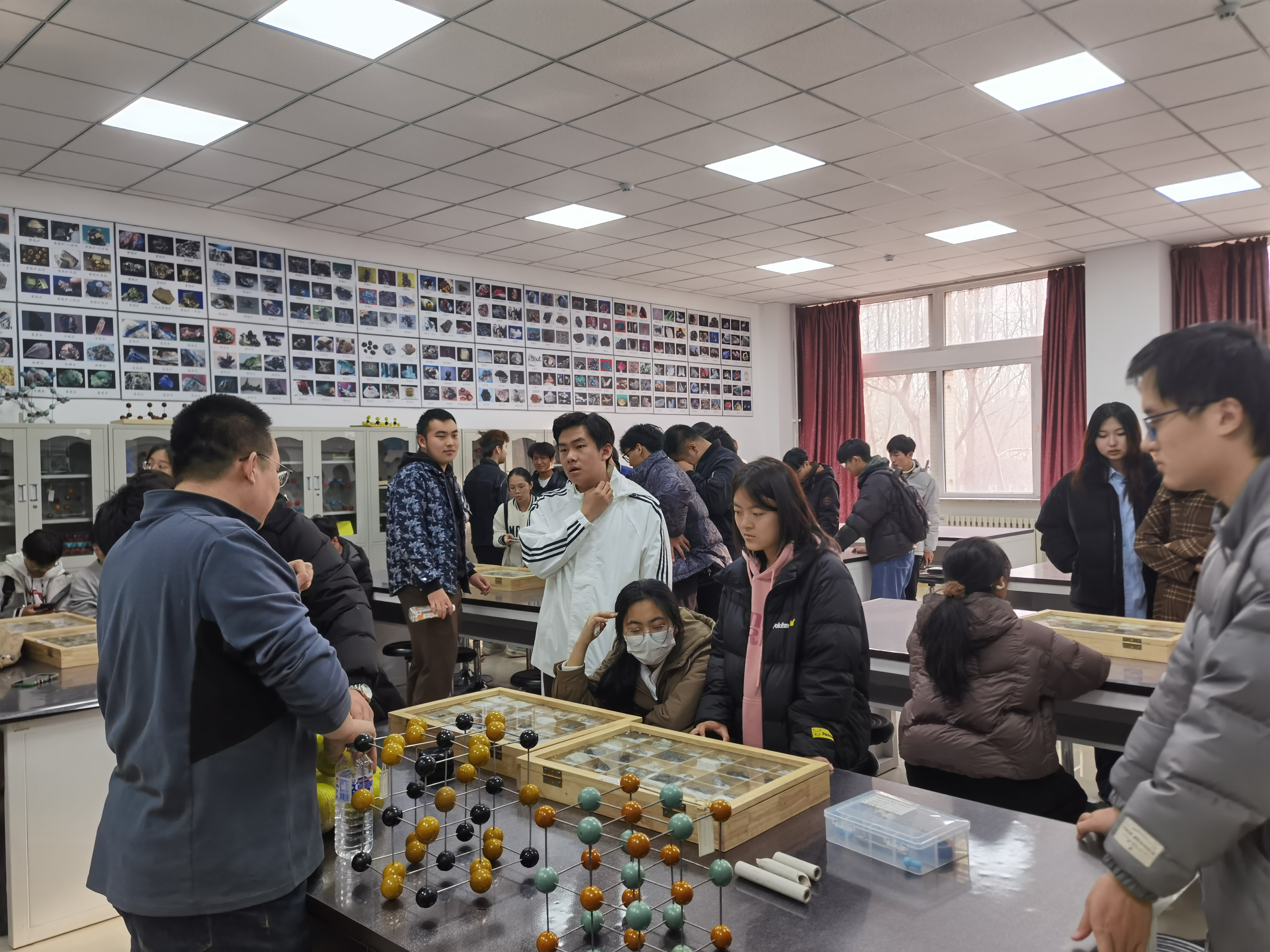 教学及科研实验室建制、教学实验室基本教学情况及其特色。之后参观了岩石学实验室、古生物学实验室、矿物学实验室。