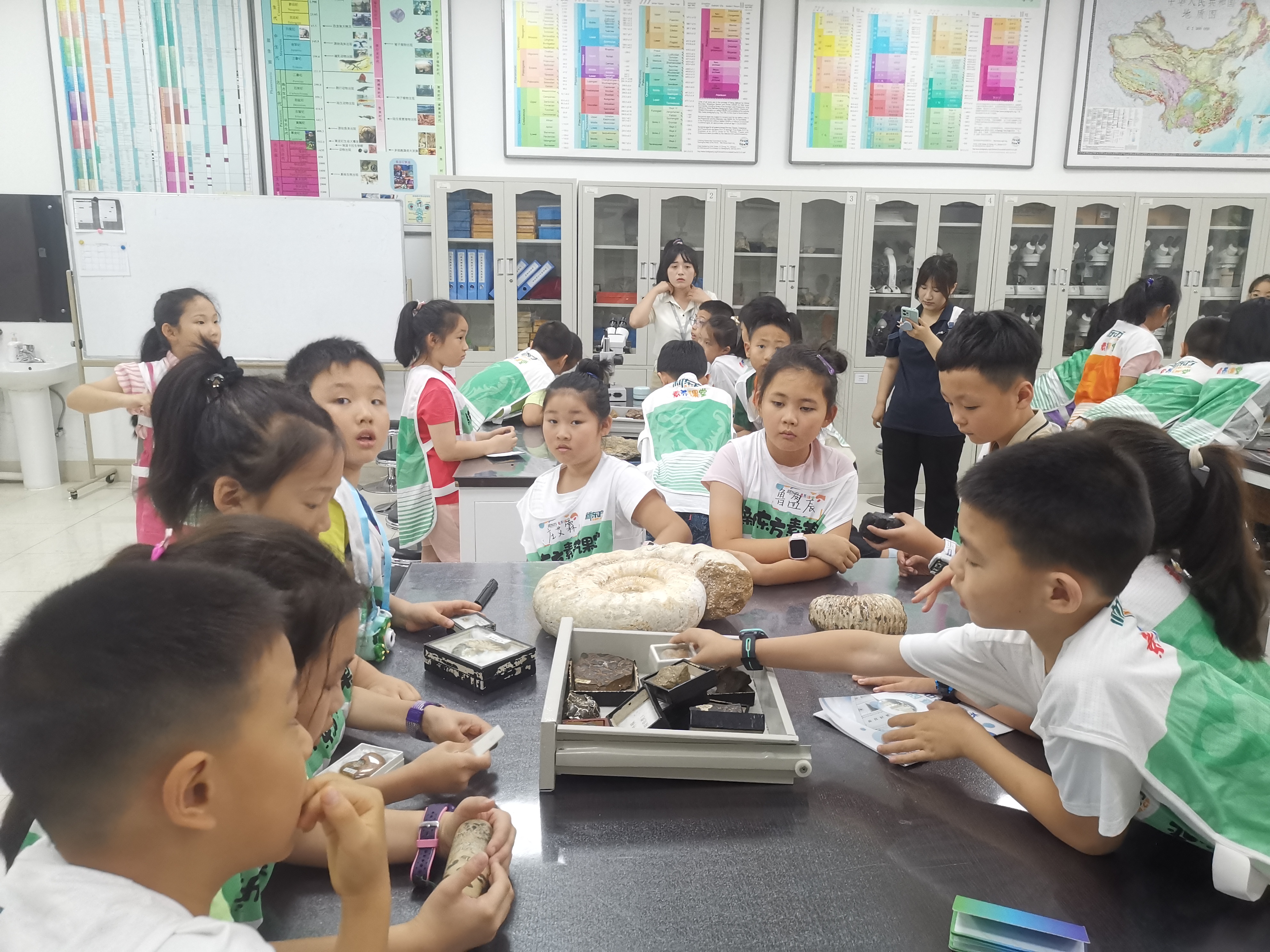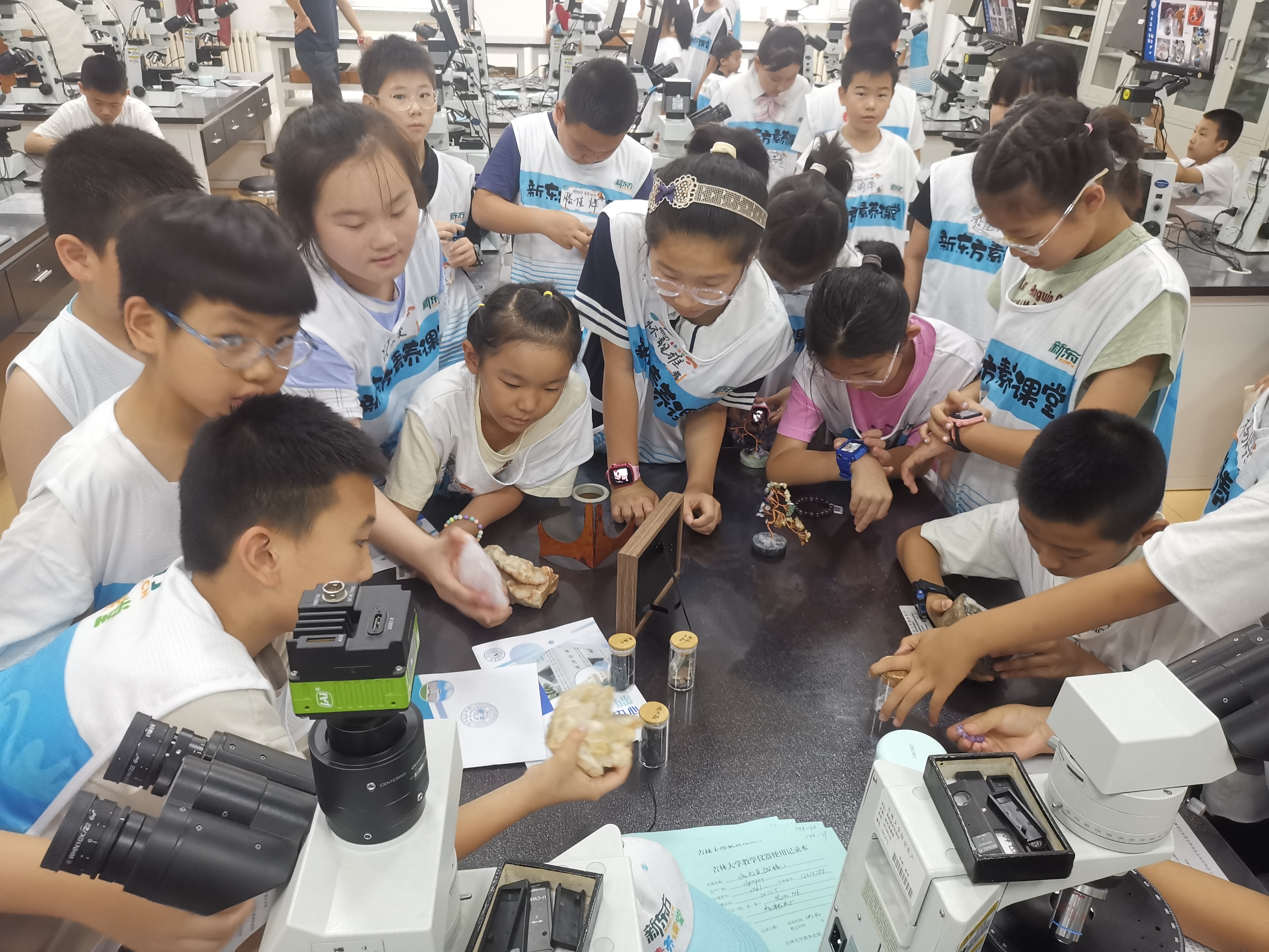策划的面向中小学生的“新东方素养课堂”暑期科技实践教育系列活动。本次活动利用周末时间,为期5天,接待小学生1000余人。本次活动利用岩石学实验室、古生物与地层学实验室,开展走进地学实验室——地质学是什么;石英与生活——地球的物质组成;真真假假的化石——地球的演化三部分内容,通过知识讲解、实物演示、标本观察等多样化的学习体验,拓宽中小学生的知识视野,激发他们探索地球奥秘的学习兴趣。