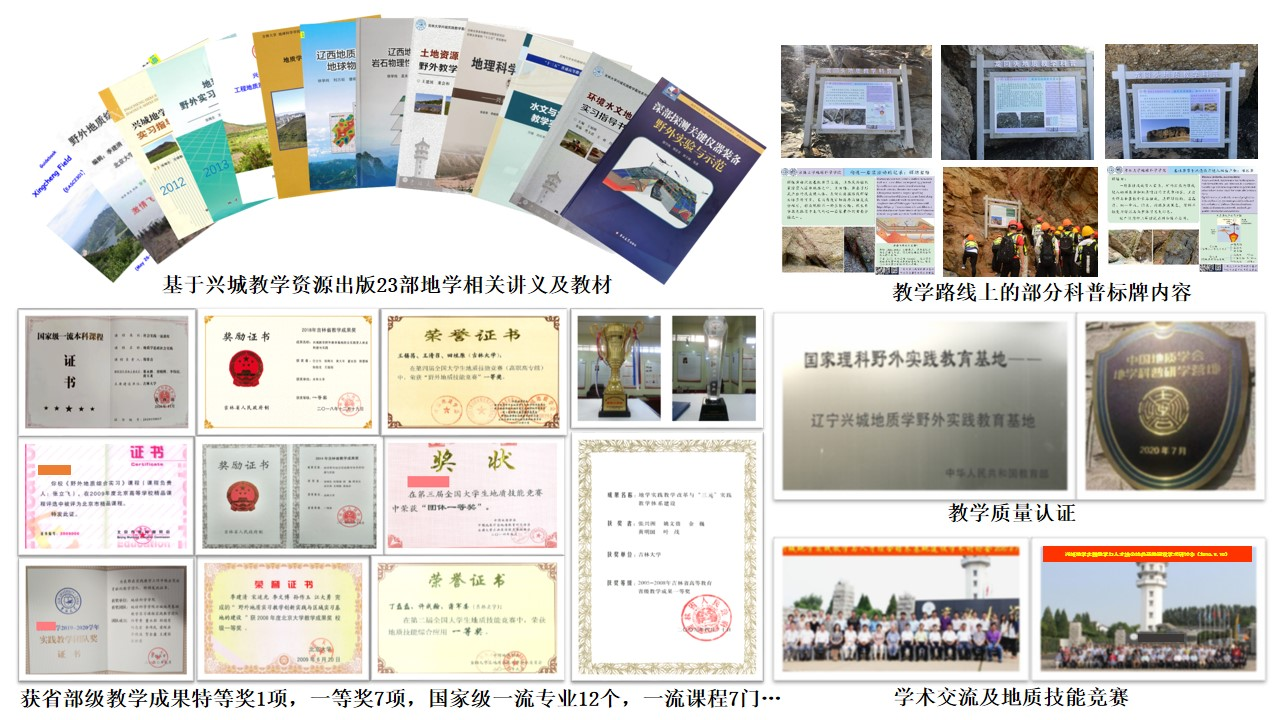 该成果先后荣获省级教学成果特等奖1项、一等奖7项,出版实践教材20部;获批“国家理科野外实践教育基地”等5个国家级和部级实践教学平台;建设了6门国家级一流课程、一个国家级虚拟教研室,培育了5个国家级、省级教学团队;建成了具备教学、科研、科普、培训等多种功能,可同时接待一千余人、年接待量达八千余人的综合性实践教学基地。