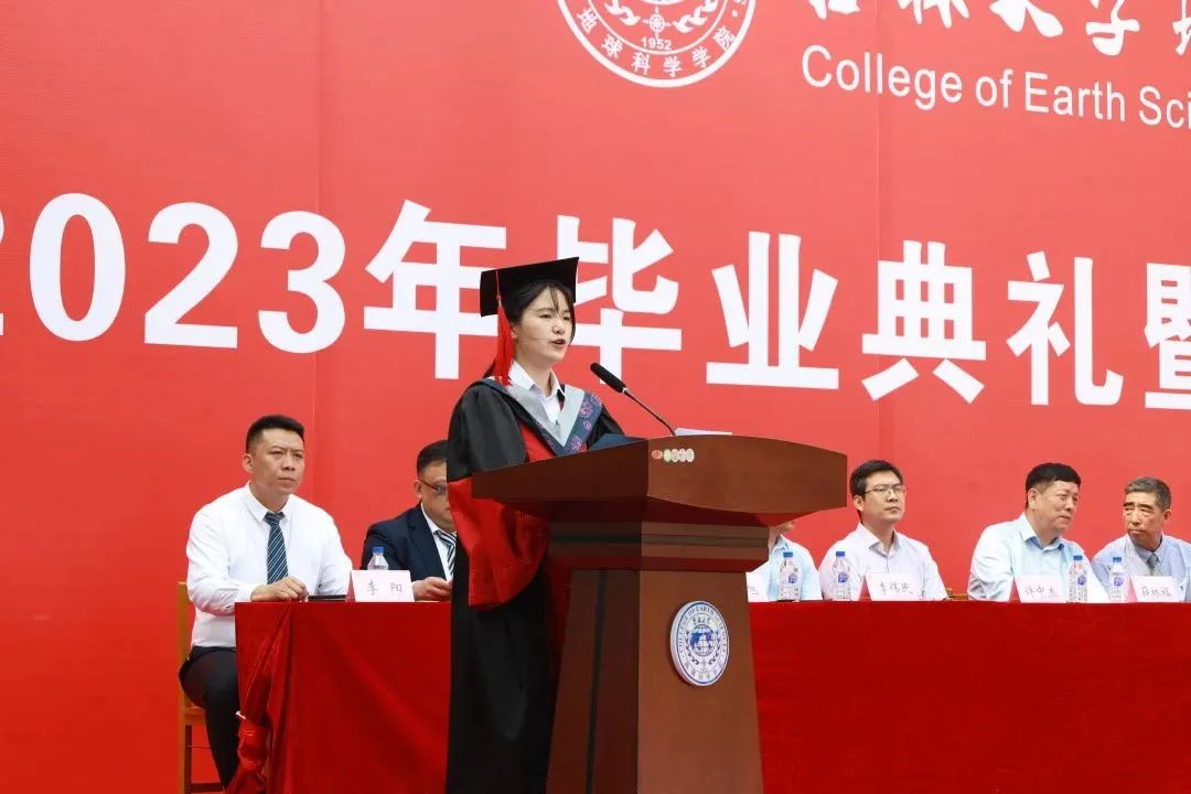 共同成长。回望来时路,你们与伟大时代“双向奔赴”,展望新征程,这方校园,再次成为你们人生的新起点,你们即将扬帆起航,开启新征程,希望你们无论何时,都要不忘地学荣光,手握科技报国的“爱国锤”;无论何时,都要不忘地质初心,手持恪守自我的“人生罗盘”;无论何时,都要不忘地学理想,手执追求卓越的“奋斗放大镜”。此去当是良辰美景;他日归来,仍当是少年。有朋自远方来,又赴远方,但无论远方有多远,鸽子楼永远是你们的摇篮!