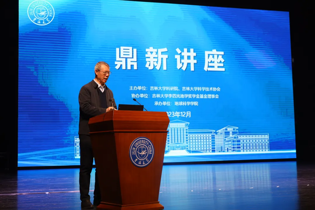 颁奖典礼后,底青云和肖文交做客“鼎新讲座”,分别以“深部资源探测关键技术与装备”和“天山增生沉积大地构造演化与成矿作用”为题作学术报告。赵国庆出席讲座并为两位院士颁发鼎新讲座纪念牌。林君主持讲座。