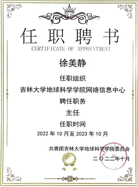地质博物馆三个微信官方公众号的负责人,在职期间,发布推送1600余条。连年获评校优秀学生干部、校优秀团干部、校优秀朋辈心理辅导员等多项荣誉。