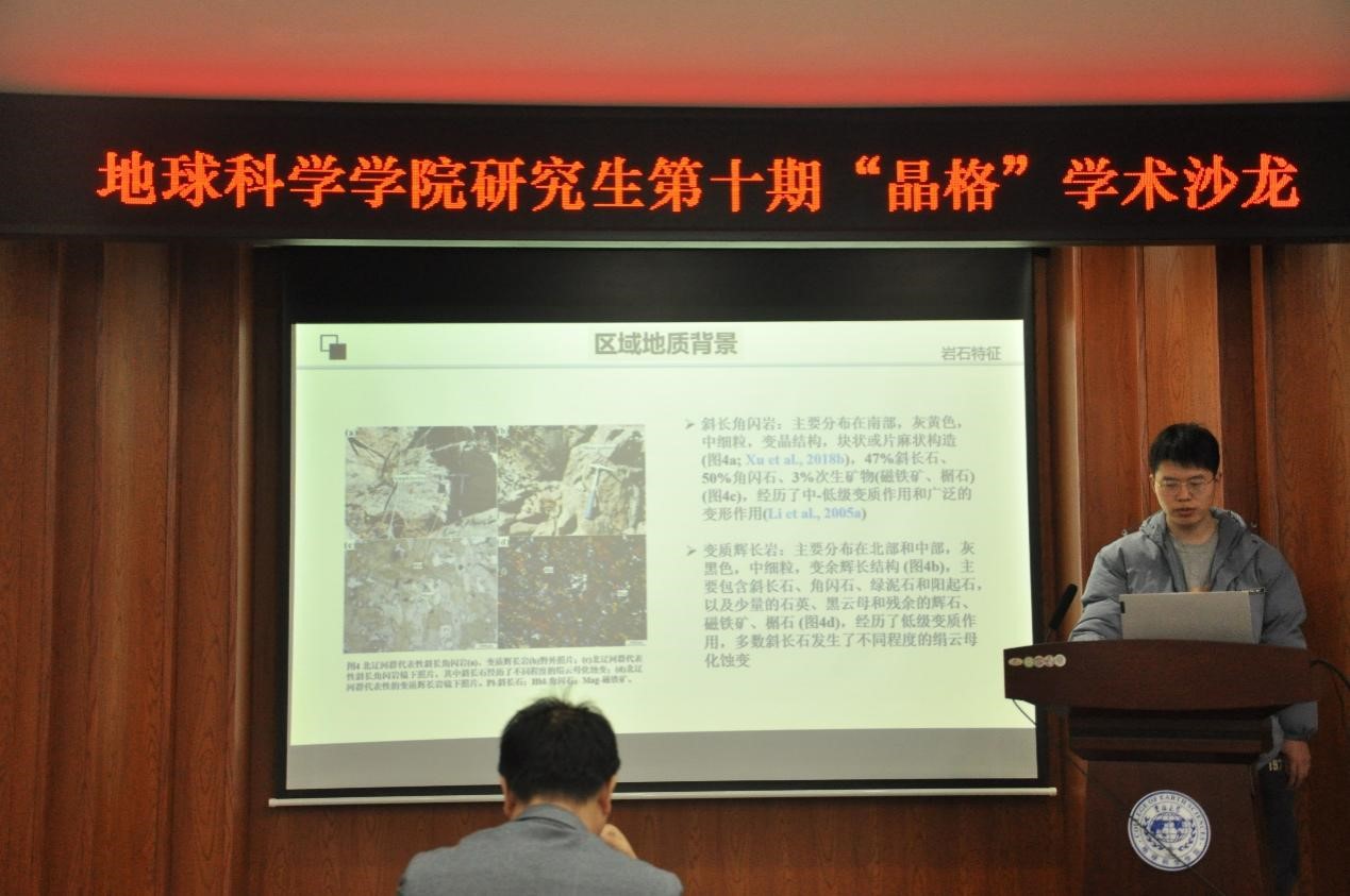 在鸽子楼108-1报告厅举办了第十期研究生“晶格”学术沙龙活动,本期活动以“探讨大陆不同地壳层次岩石变质变形机制及构造背景“为主题,确定岩石变质-变形时代,探讨地球早期壳-幔过程,从而揭示岩浆侵位机制及区域构造演化。活动由赵佳奇、周颂、关子成、庄思潼、魏虹羽、李效港和赵立翔七位研究生担任主讲人,郑常青、杨言辰和梁琛岳三位教授担任指导老师,活动由2023级地质学专业硕士研究生谭卓主持。