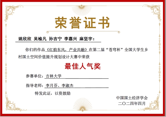 选手表现出较高的专业水准、临场应辩能力和良好的精神风貌,最终荣获三项佳绩。学子们不仅在大赛中展现了扎实的专业素养和创新能力,同时也通过大赛的锻炼,显著地提高了专业技能;而学子们的优秀作品,则为乡村国土空间价值的提升提供了宝贵的思路和方案。