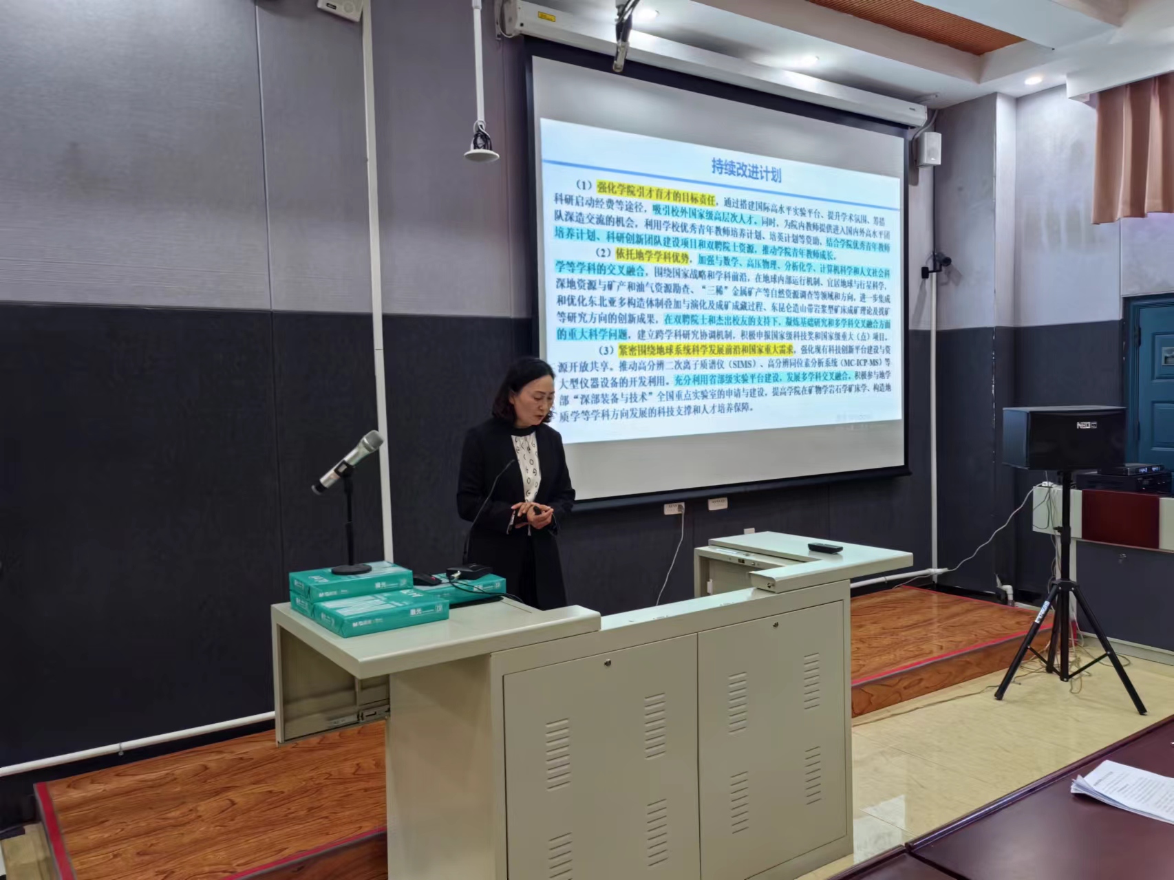 工作再上新台阶。副院长许中杰就本科教育教学审核评估自评情况进行了汇报,副院长柳蓉就地质学学位点2020-2025年学位授权点周期性合格评估情况进行了汇报。