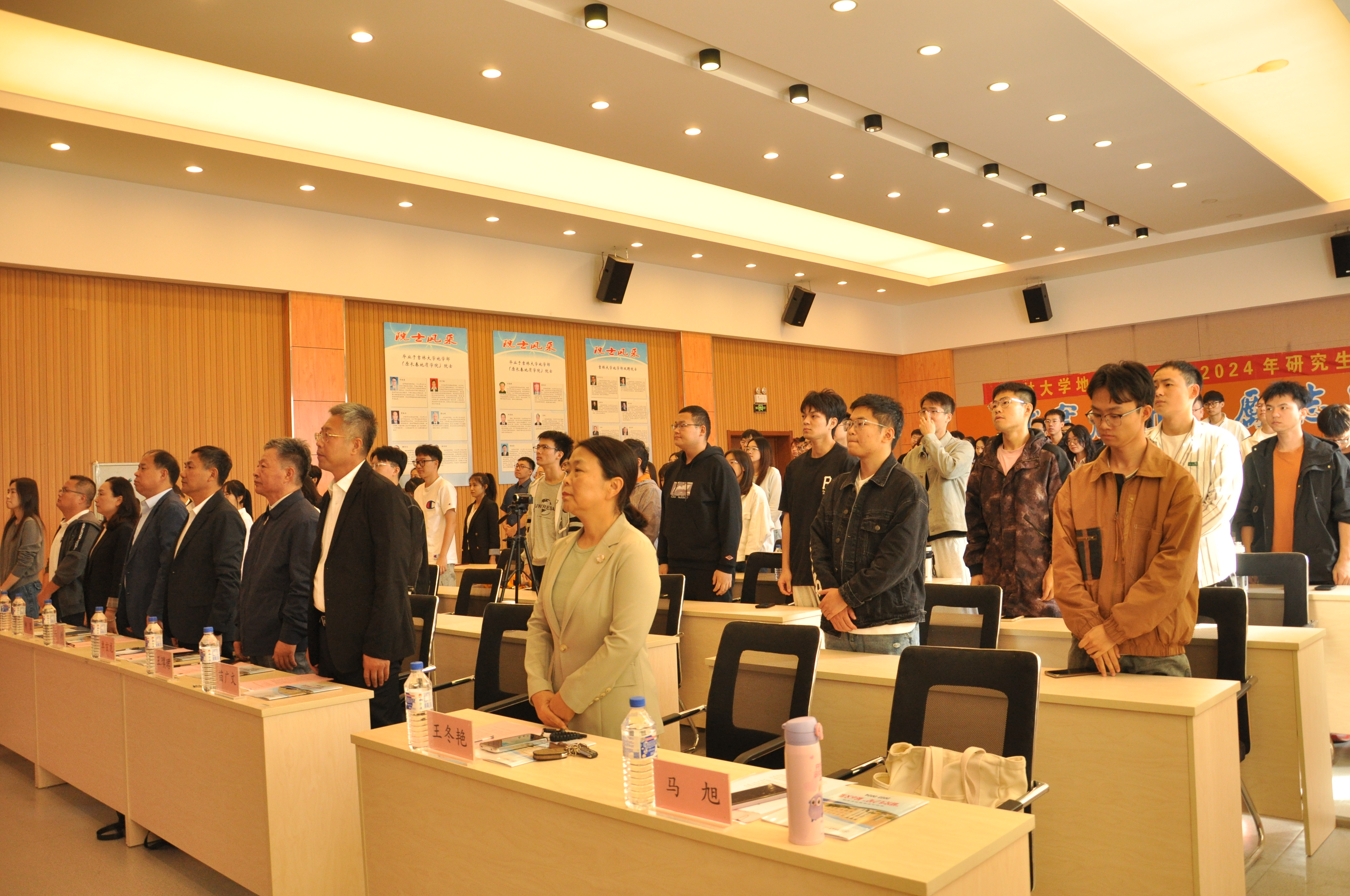 迎来了112名硕士生、35名博士生新同学,他们如同新芽初露,充满朝气与活力,怀揣着对知识的渴望和对未来的憧憬。开学典礼在庄严的国歌声中拉开序幕。
