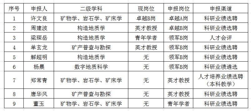于5月16-20日分别召开教学委员会、学术委员会、党委会和党政联席会,对申报人的政治表现、师德师风、教育教学、人才培养、科学研究和违规违纪违法等情况做综合鉴定,同意推荐许文良等9人申报“唐敖庆学者”人才岗位,现将申报人材料在113-1办公室进行公示,公示期为5个工作日(2024年5月16日-24日)。