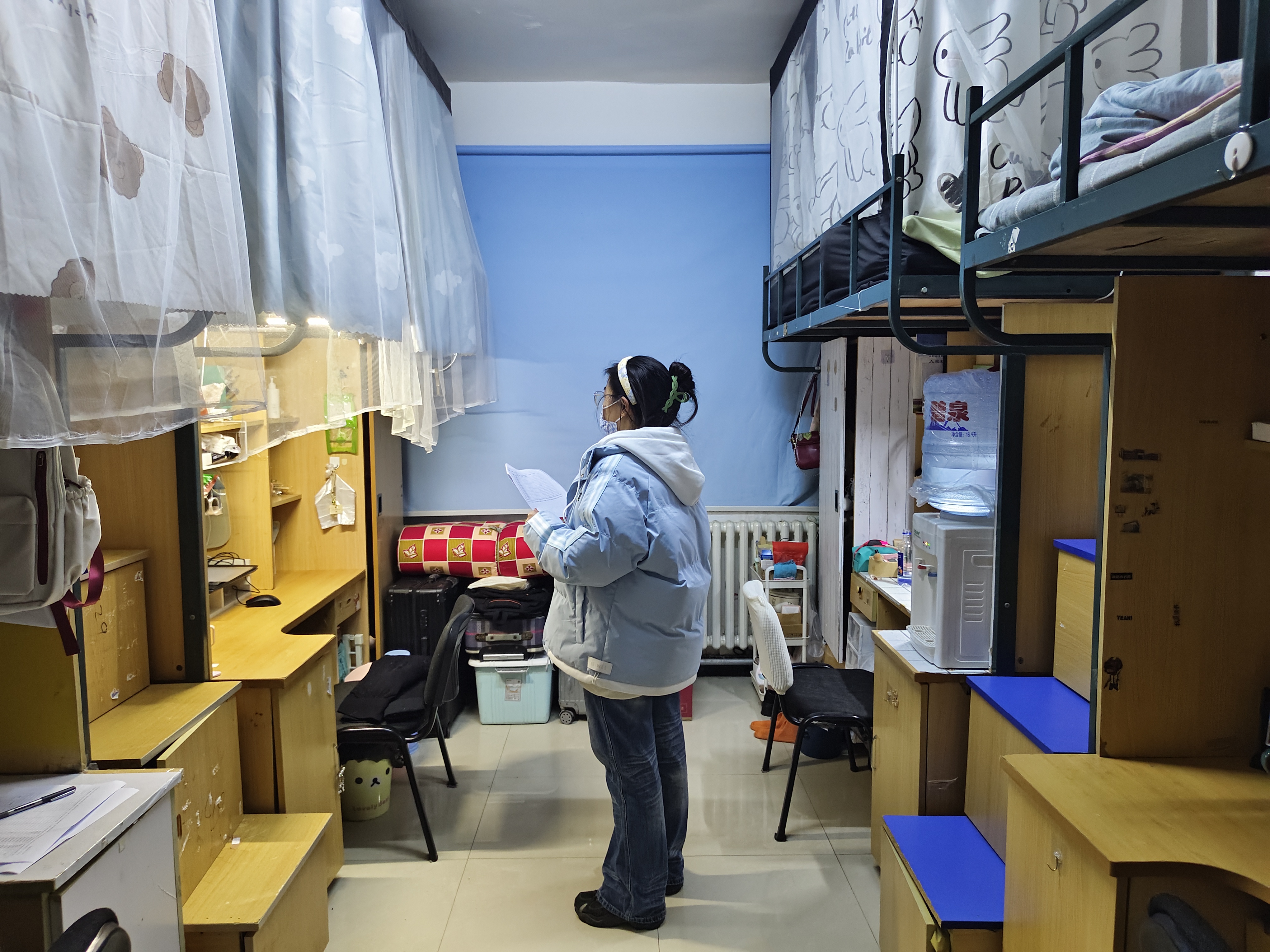 所有研究生寝室进行了拉网式、全覆盖的自查工作。检查内容不仅涉及寝室内务卫生,更将安全隐患排查作为重中之重,确保研究生人身和财产安全。工作小组着重检查了寝室内是否存在大功率电器、易燃易爆物品及管制器具等安全隐患,将寝室安全情况作为衡量寝室管理质量第一标尺,严把寝室安全大关。在确保寝室安全达标基础上,工作小组严格按照《标准》逐项打分,对寝室内的学习用品、生活用品摆放,床上用品叠放,床下及书桌下物品整理,以及被褥、衣物等是否有异味等进行了细致检查。此外,工作小组还借此契机,积极了解研究生的思想状况,关注研究生在日常学习生活中遇到的重难问题,倾听需求,及时解决,着力做好研究生生活保障工作。