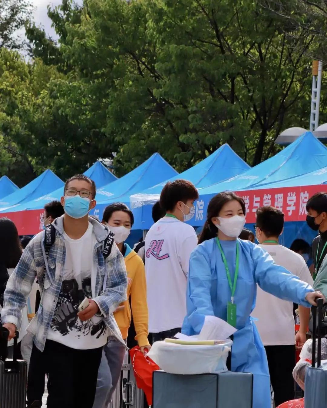 2022级的新同学。这些同学在办理好入校手续后,也积极投身于志愿者队伍中,成为迎新志愿者队伍中一道亮丽的风景。