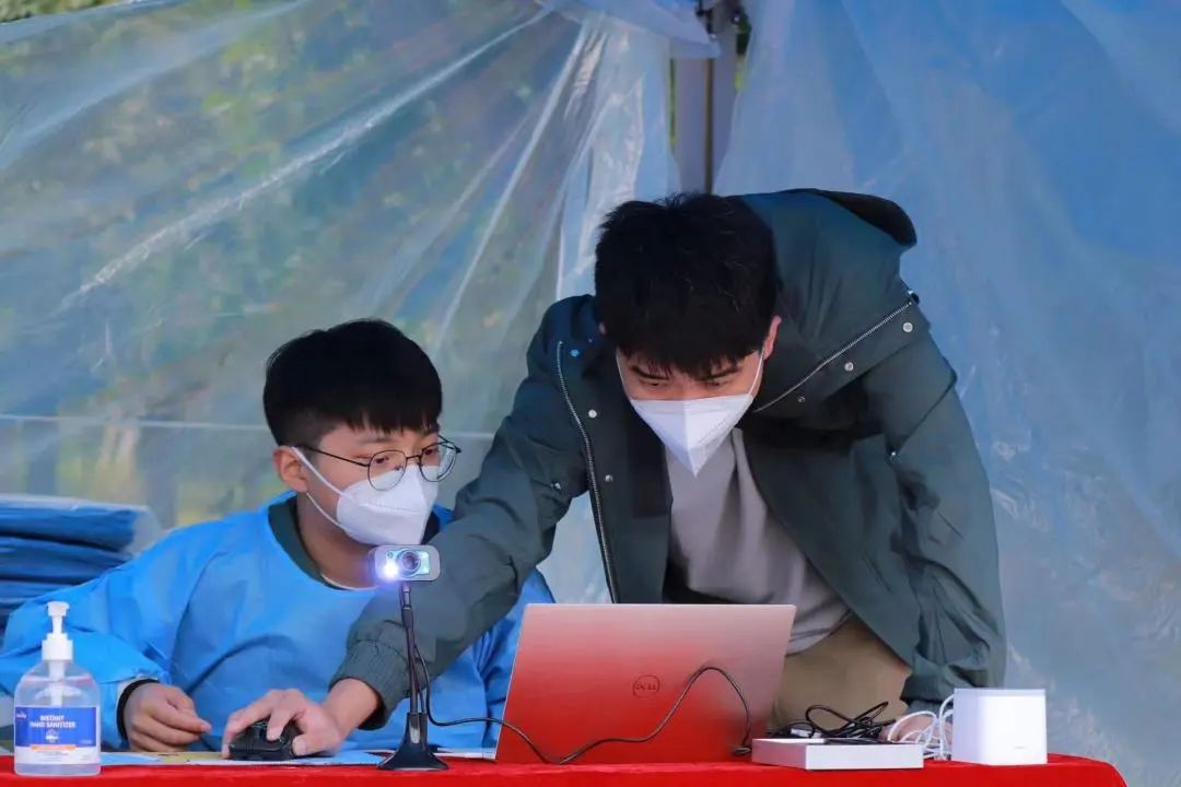 的校园,迎接他们的是志愿者们亲切的问候。人脸识别、分发材料、绿色通道等各项工作在志愿者们热情的引导下顺利快速完成。