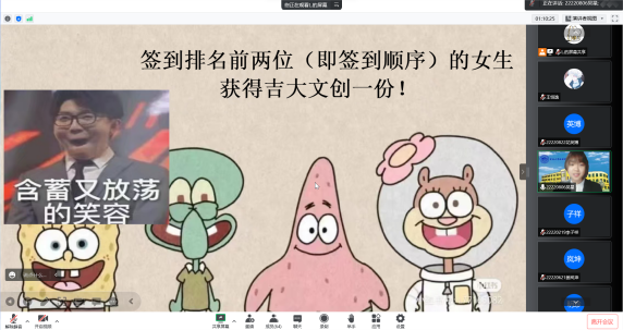 第一个环节“听歌识曲”很快就调动起了同学们的积极性,同学们踊跃参加,在聊天区竞猜歌名,在歌声中拉近了同学们之间的距离,而答对的同学也收获了小礼物。