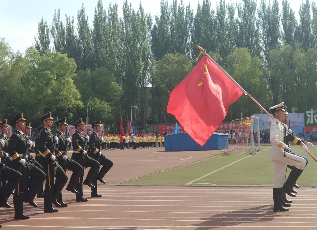 人面向国旗肃立,原本喧闹的运动场霎时安静下来,全体人员共同歌唱国歌,注视国旗缓缓升起。接下来校歌奏响,在“白山迎旭日,黑水泛金光”中,开幕式来到了高潮。