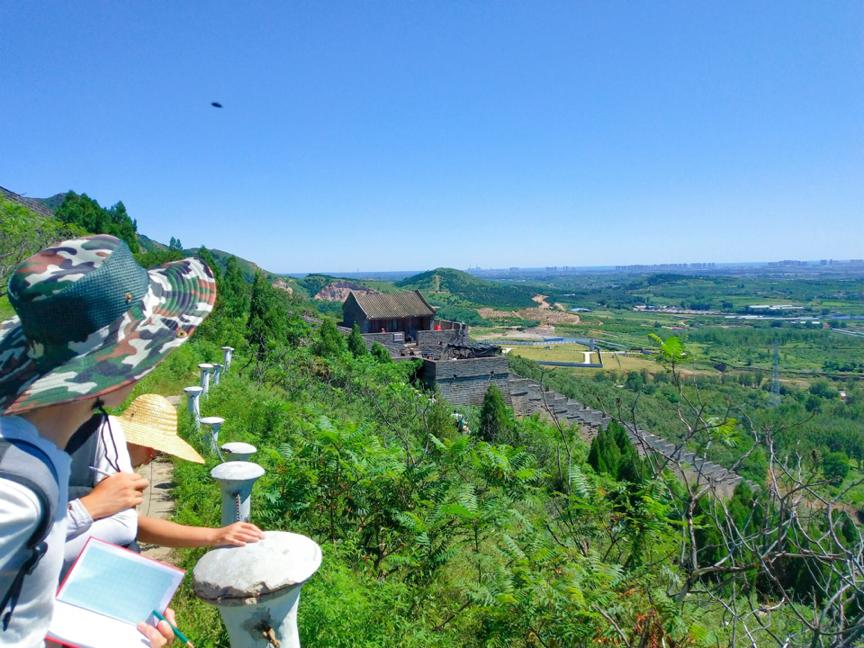 两个半小时的车程没有让大家的热情消退半分。上午十点,我们来到了风光秀丽的角山长城,雄奇的险峰屹立,古老的长城连绵不断,坐落群山之中,烽火台的残垣断壁向我们诉说着王朝更迭,历史兴衰。大家都被壮美的风景深深吸引,沿着盘山的栈道,在老师的带领下向着群山之中走去。