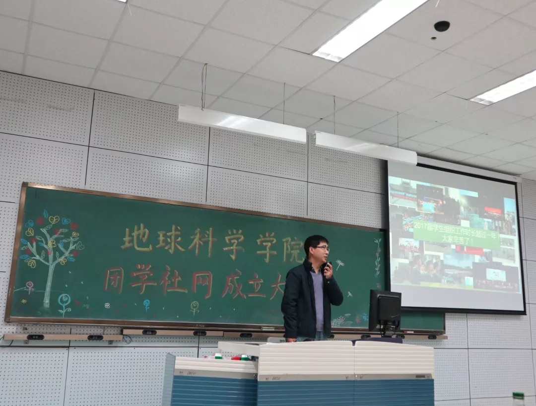 第十九届团学社网成立大会于李四光104召开。出席成立大会的有党委副书记、副院长曲珩老师,团委负责人、15级辅导员韩旭老师,18级辅导员曲鹏展老师以及团委,学生会,社联,网络信息中心的成员。