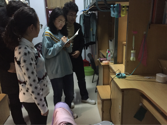 生活部的同学进入寝室后,向住宿生了解宿舍生活情况,询问同学们日常生活中遇到的问题并给予了生活建议,同时对寝室卫生安全进行检查。生活部人员叮嘱同学们一定要注意安全用电,提醒各位同学不要乱拉电线、插排等,同时将寝室中的电线质量进行了抽查,对于电线的摆放进行了合理化建议,并且提醒同学们要注意保持寝室的整洁。检查结果良好,没有发现任何违规电器。通过这次走访寝室,增进了各位生活部人员对同学们宿舍生活情况的了解,加强了住宿生的安全卫生意识。