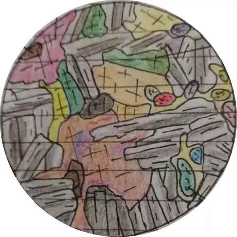 在《岩石学》的实习课中,老师要求同学们进行镜下薄片素描。不要以为素描是个简单的事情。薄片的素描要求同学们按比例将显微镜下岩石的矿物组成、形态、含量及显微结构特征等表现出来。打个比方,这就像是要求我们在做高数大题的同时仔细分析出全部考点并逐一解决一样。