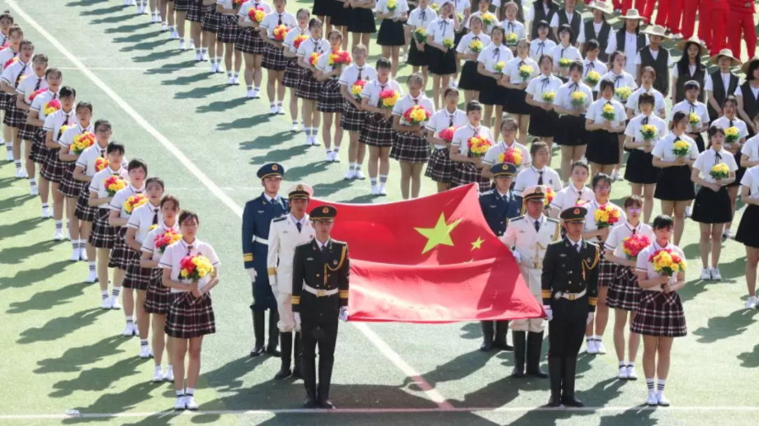 的一面旗帜,今天的他们挥汗如雨,辛苦训练,明日的他们将用他们的才智和强健的体魄保卫祖国,为国争光。