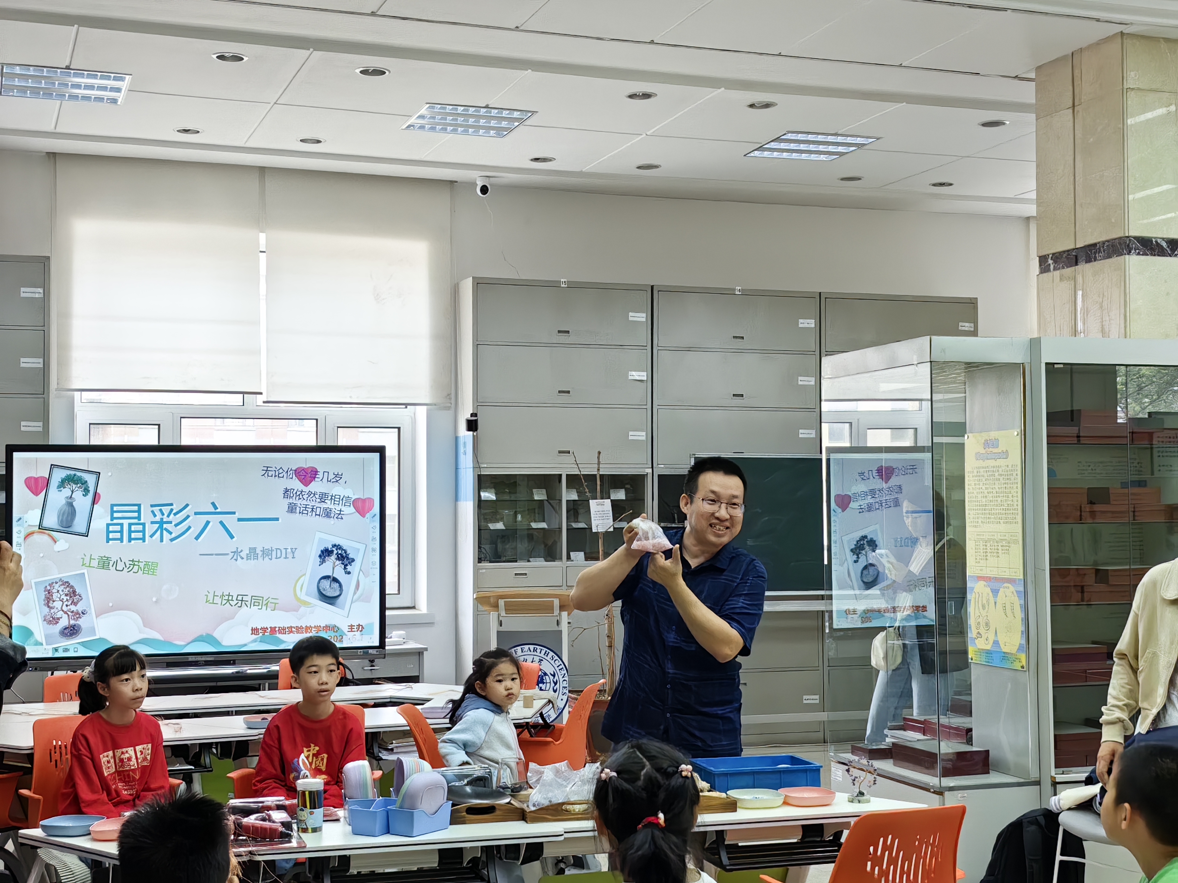 在“六一”国际儿童节到来之际,为进一步推广地质文化知识,推动地质与文创、研学活动的深度融合,激发学生创新实践的兴趣与积极性,培养创新创业实践能力,实验教学中心由“盘古开天”学生创业训练团队面向全校开展“聚石成梦·晶彩六一|水晶树DIY奇幻工作坊”活动;由实验技术人员面向17吃瓜网 教工及子弟开展“晶彩六一*水晶树DIY”亲子体验活动。