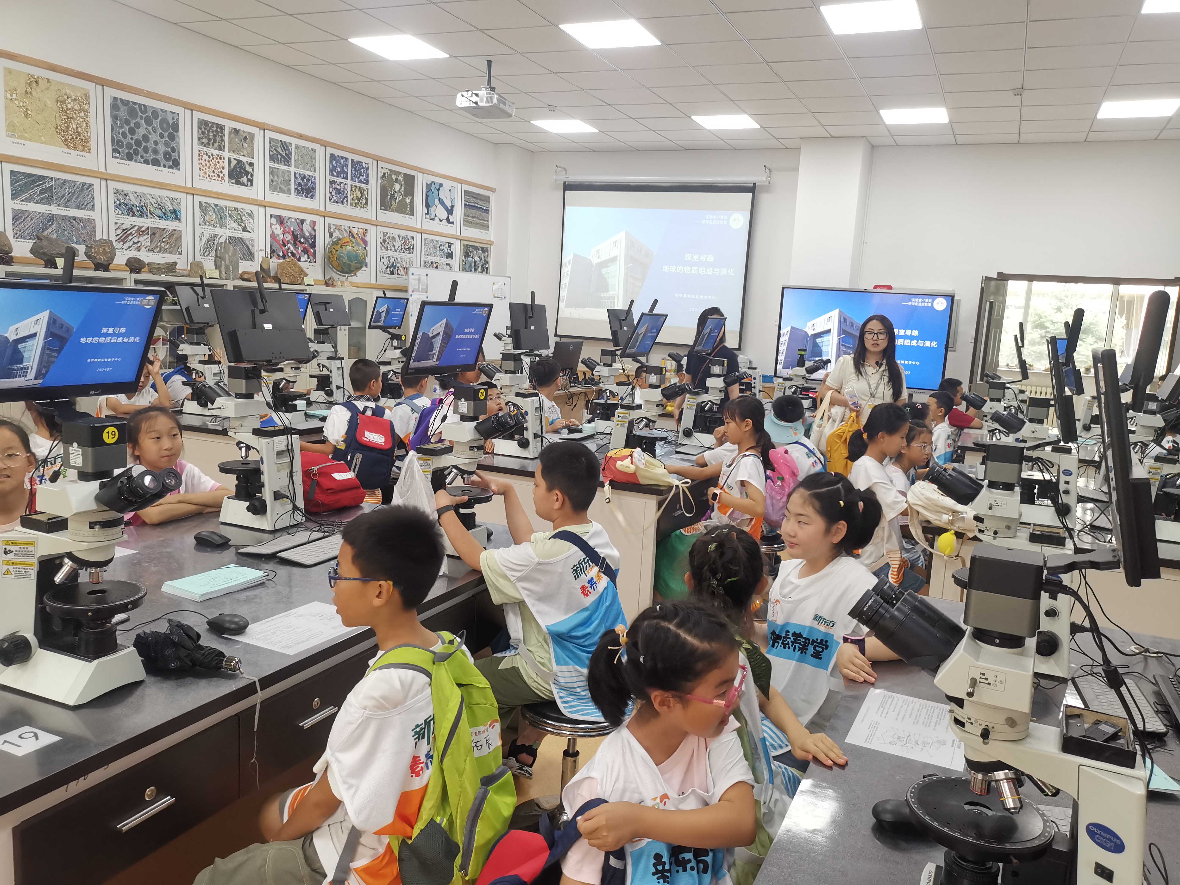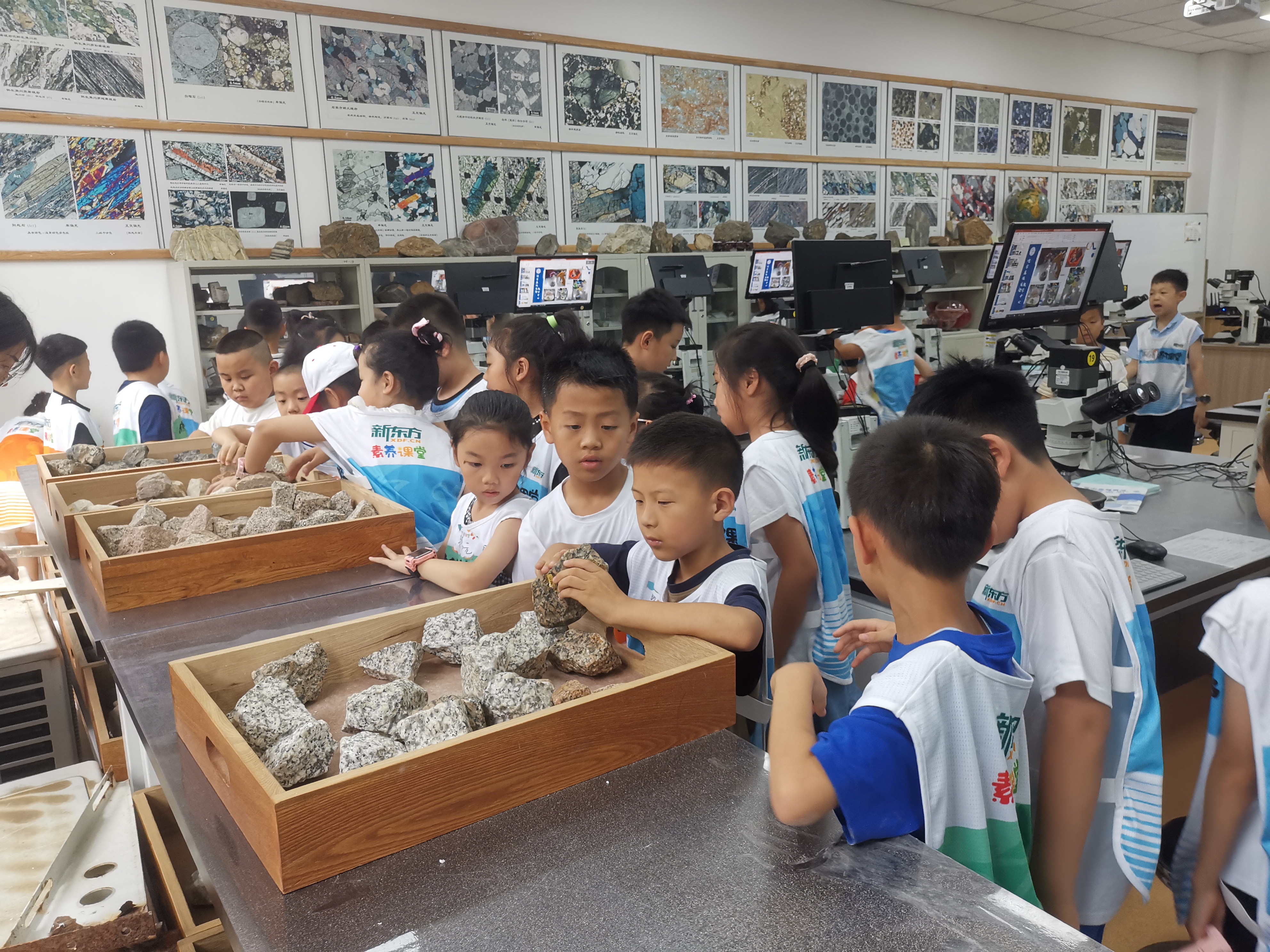 策划的面向中小学生的“新东方素养课堂”暑期科技实践教育系列活动。本次活动利用周末时间,为期5天,接待小学生1000余人。本次活动利用岩石学实验室、古生物与地层学实验室,开展走进地学实验室——地质学是什么;石英与生活——地球的物质组成;真真假假的化石——地球的演化三部分内容,通过知识讲解、实物演示、标本观察等多样化的学习体验,拓宽中小学生的知识视野,激发他们探索地球奥秘的学习兴趣。