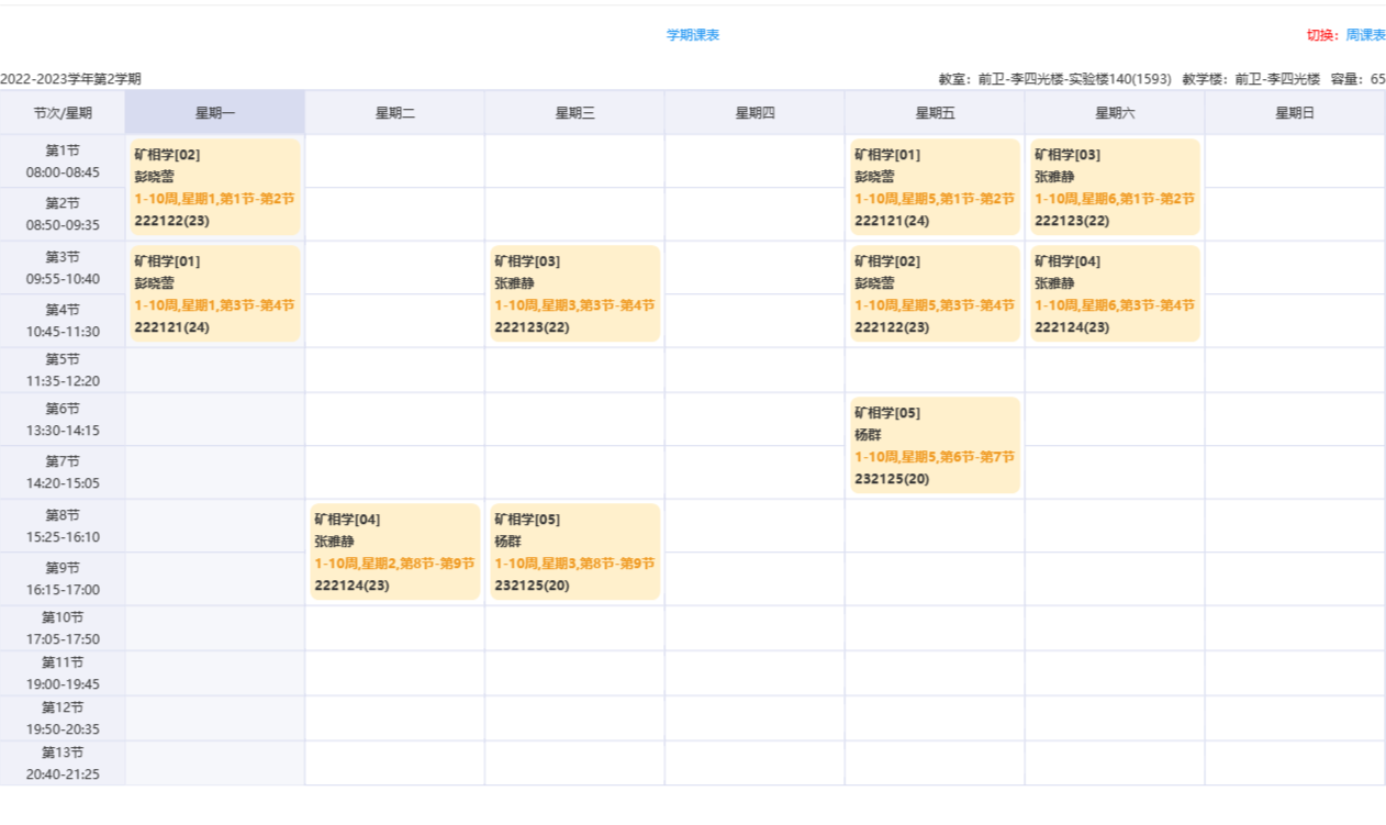 2022-2023学年第二学期(2023春季)课表